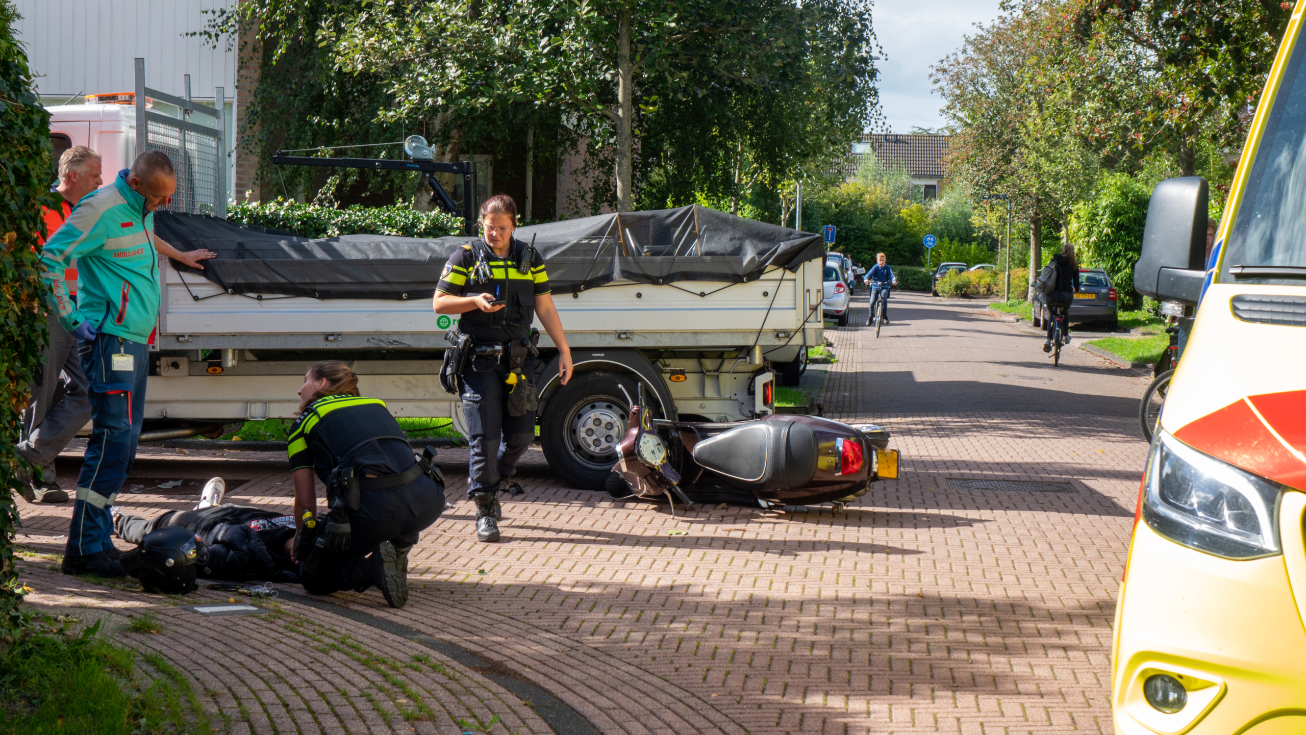 Dinsdagmiddag is een scooterrijder gewond geraakt op het kruispunt van de Pinksterbloemerf en de Boterbloemweg in Bergen. Hij liep de verwondingen op toen hij betrokken raakte bij een botsing met een kleine vrachtwagen. De scooter reed tegen de zijkant van de vrachtwagen die op dat moment de kruising overstak.