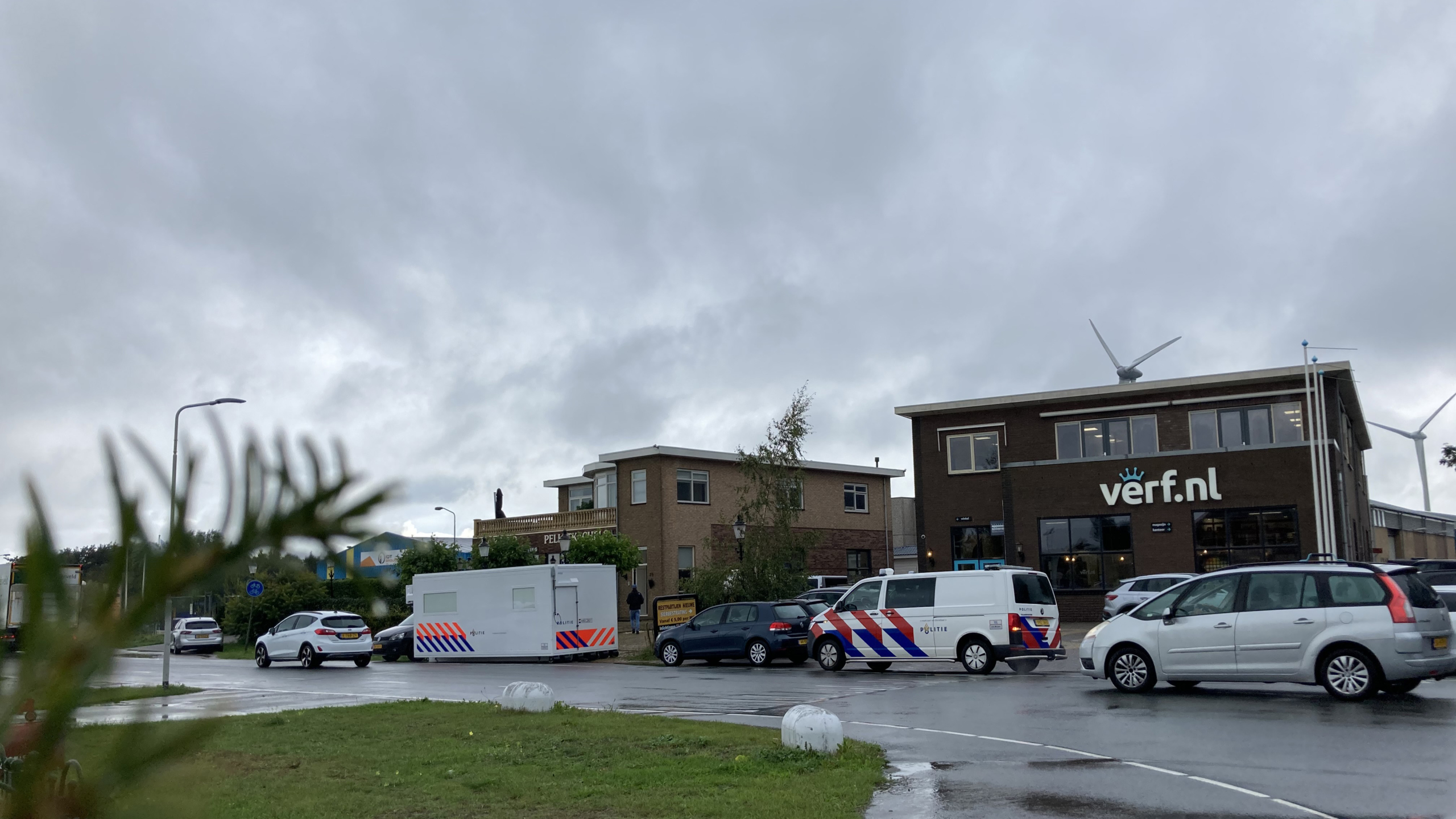 De politie was groots uitgerukt. Bij bedrijfspand staan een mobiele kantoorunit, een container, busjes en auto's van de recherche. De douane was aanwezig met een vrachtwagen met scanapparatuur en een lopende band. Er werden pallets naar buiten gereden, met daarop zakken waarin normaal aarde of zand zit.
