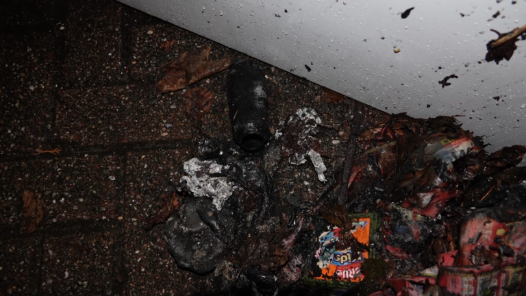 Vier brandweerwagens gingen af op wat bleek een afvalbrand naast een container te zijn, bij een kapperszaak. Het vuur was snel onder controle, maar er was toch enige schade aan de gevel. De brandweer trof in de brandresten sporen van brandstichting, zoals een deo-bus. De politie onderzoekt de zaak verder. (foto's: GLOCALmedia)