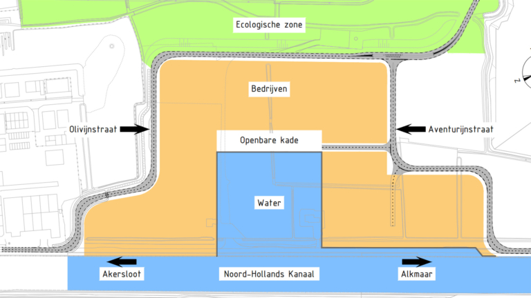 Het havengebied wordt 144 bij 144 meter groot. Het terrein grenst aan de gloednieuwe Olivijnstraat en GP Groot B.V. Tussen de haven en het circulaire sloopbedrijf komt de Aventurijnstraat te liggen, voor aansluiting van de Boekerdijk op de Olivijnstraat.