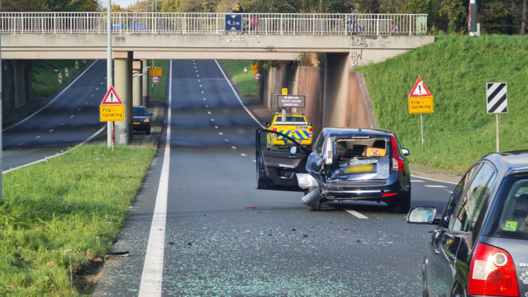 De oorzaak van de botsing op de N508 is vooralsnog niet duidelijk. Aangezien bij de plaats van het ongeluk wordt gewaarschuwd voor filevorming, bestaat het vermoeden dat de automobilist niet door had dat het verkeer langzamer reed. De Nollenweg is vanwege het onderzoek afgesloten geweest. (Foto's: Inter Visual Studio)