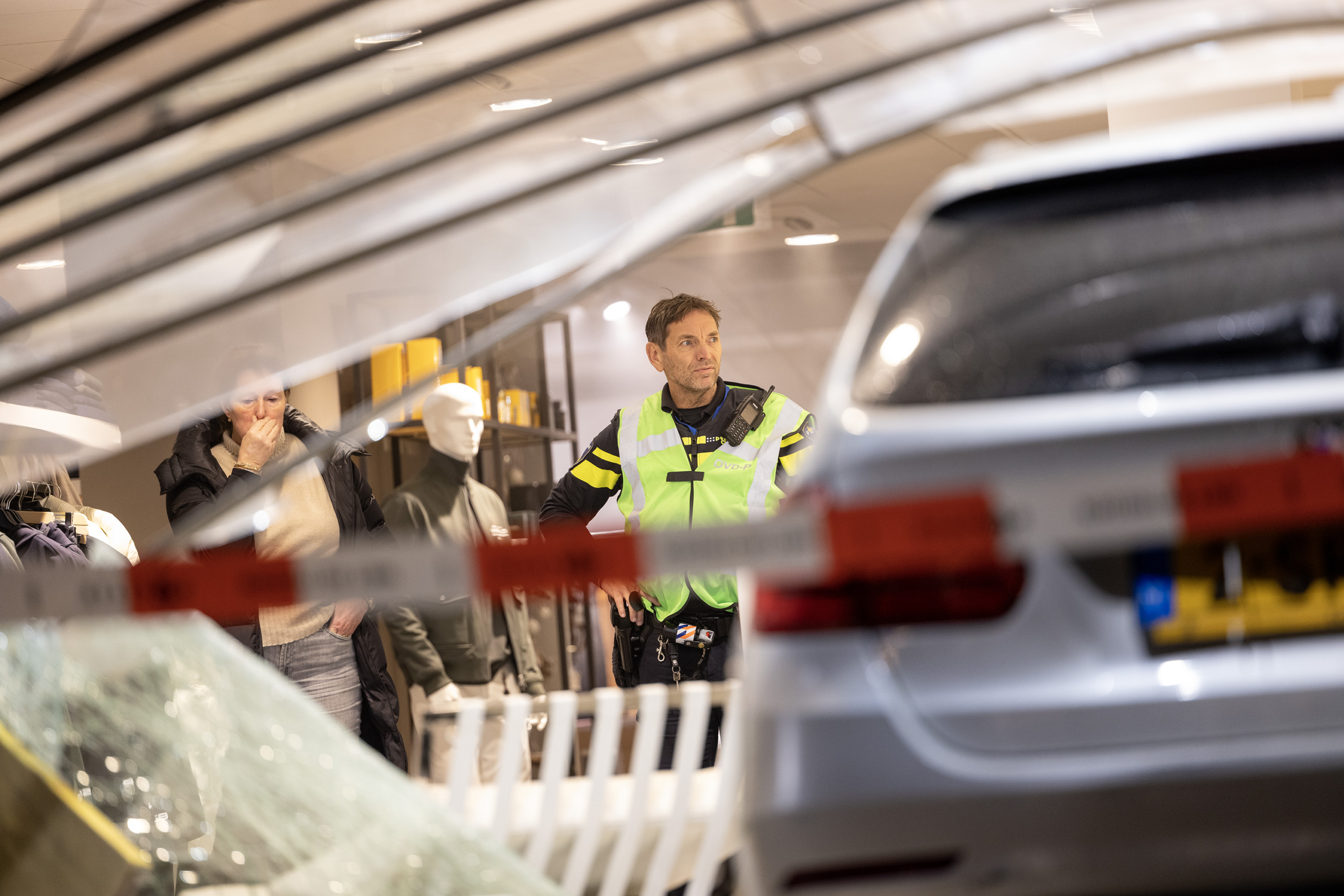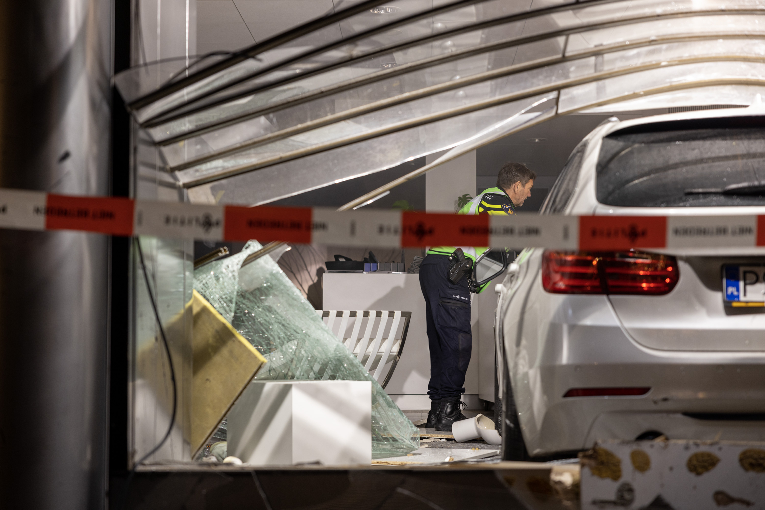 De aangeslagen eigenaar en zijn zus kwamen poolshoogte nemen bij de ravage die de ramkraak heeft aangericht. De materiële schade die door de kraak is ontstaan is groot.