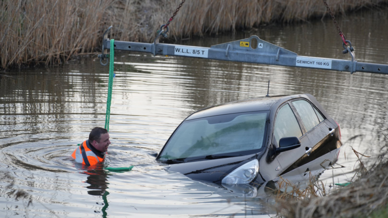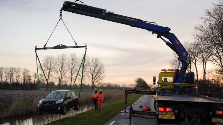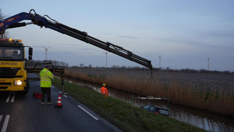 In de nacht van donderdag op vrijdag is een auto te water geraakt bij de Westelijke Randweg in Oudkarspel. Vermoedelijk verloor de automobilist door de gladheid de macht over het stuur.