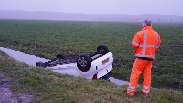 Door een nog onbekende oorzaak miste de bestuurder een bocht en kwam de wagen op zijn kop in de sloot terecht. Het slachtoffer is met een ambulance naar het ziekenhuis gebracht. Een bergingsdienst heeft de auto uit het water gehaald en meegenomen.