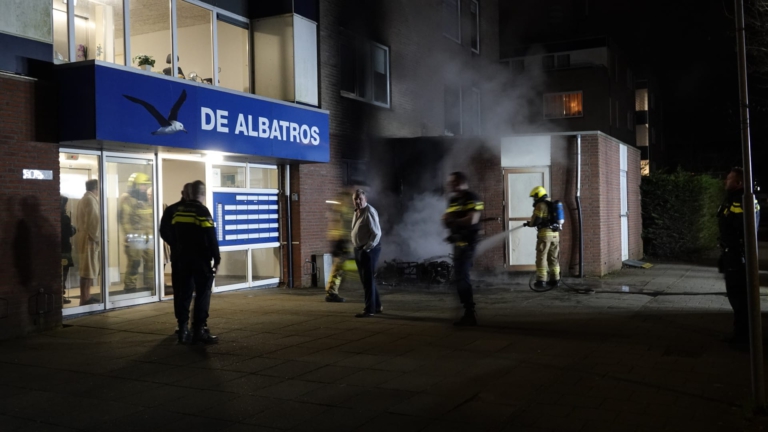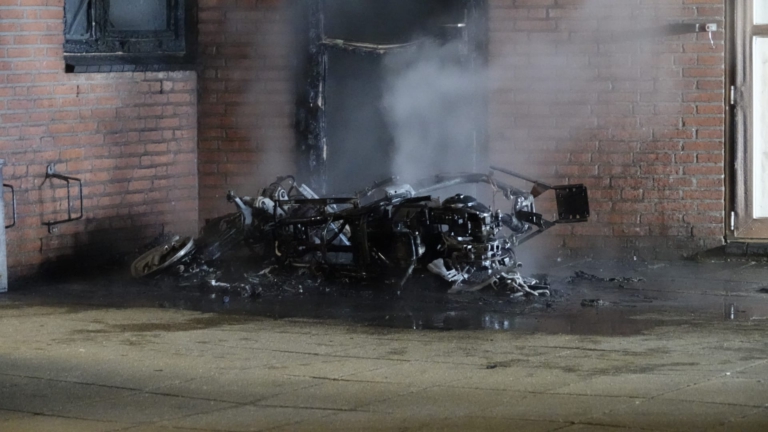 Een scooter is in de nacht van maandag op dinsdag volledig uitgebrand aan de Roze Flamingo in Heerhugowaard. De scooter stond direct voor appartementencomplex De Albatros en de vlammen sloegen hoog tegen de gevel. De brandweer werd rond 02:00 uur ingeschakeld en heeft tijdens het bluswerk vier woningen ontruimd. De politie vermoedt brandstichting.