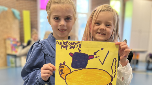 "We hebben het er met de kinderen in de kring over gehad en gekeken wat we er tegen kunnen doen." Uit het gemopper vloeide een creatieve les voor de kinderen met als resultaat grappige, zelfgemaakte bordjes. Op de anti-hondenpoepbordjes staan teksten als: 'Geen poep! Ruim op, dank!, 'Niet poepen, wij willen geen vieze schoenen!' en 'Geen poep op het schoolplein.' Versierd met zelfgetekende hondjes en natuurlijk drollen in alle vormen en maten. De leerlingen hebben de bordjes vervolgens gezamenlijk opgehangen in de omgeving van de school.