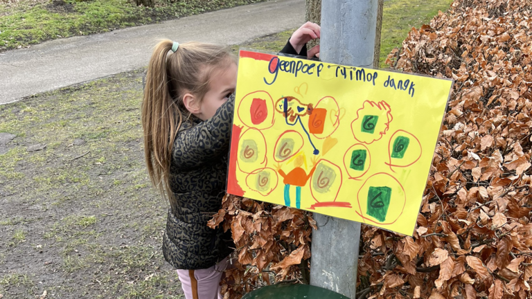 "Als we mensen zonder zakje zien lopen, spreken we ze er op aan. Toch werkt het denk ik het beste als de kinderen dat zelf doen. Laatst was een jongetje naar een man toegelopen en wees naar het bordje. Dan gaat het op een leuke en schattige manier in plaats van dat iemand boos wordt. We willen niemand op de vingers tikken, maar we willen dat het stopt", vertelt Dely.