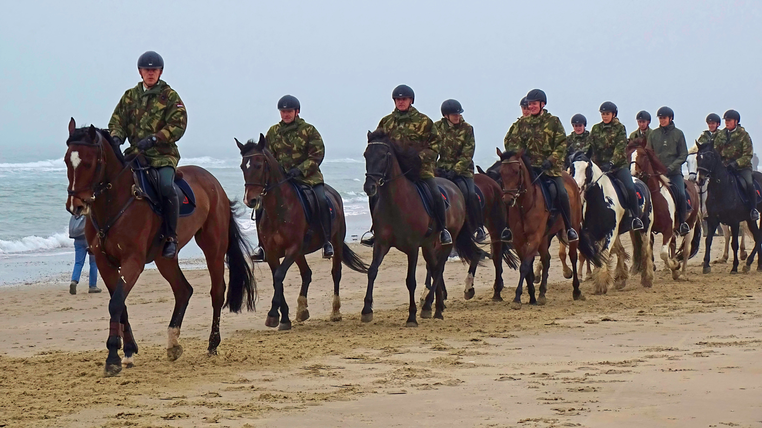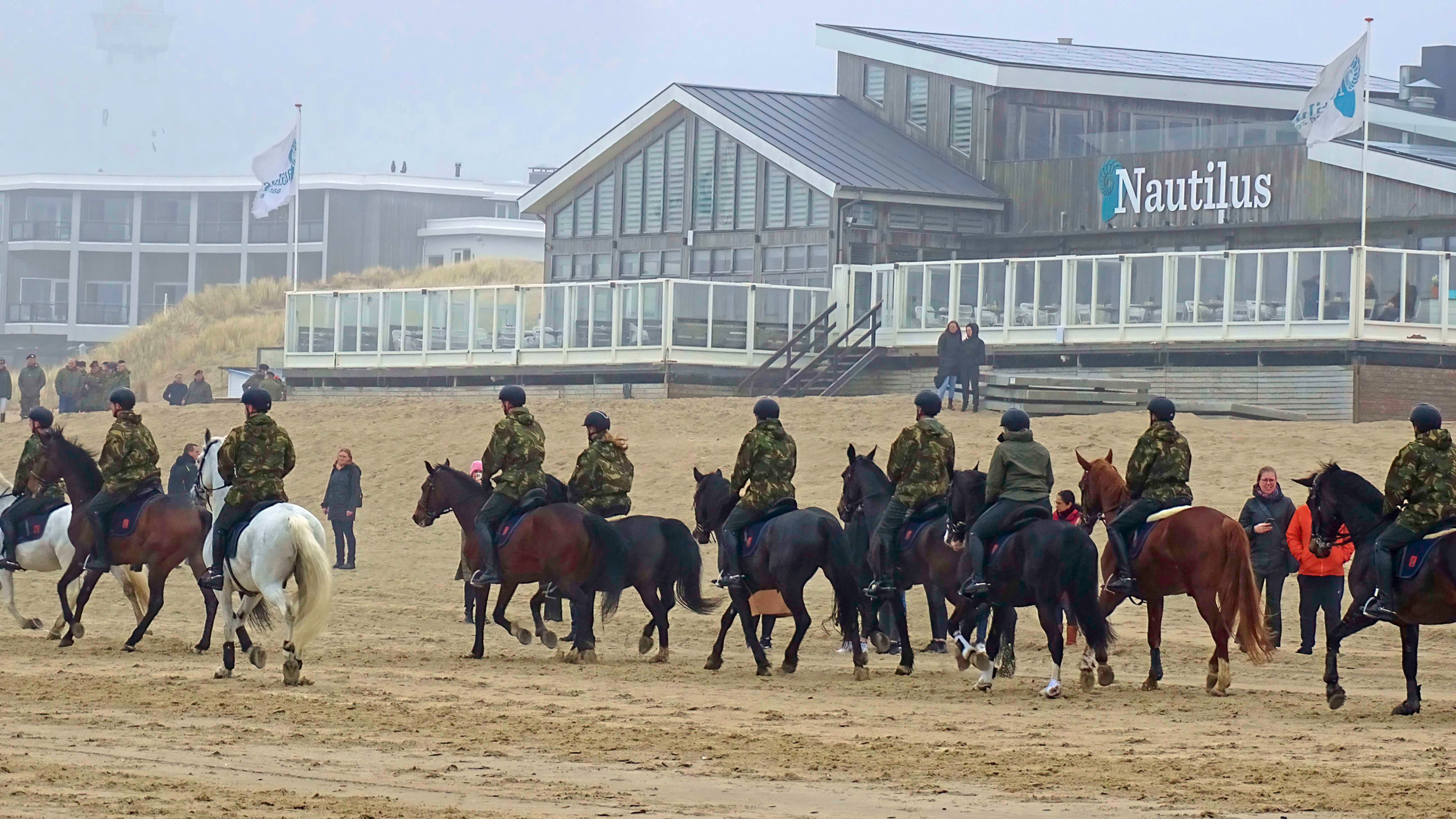 De strandgangers van Egmond aan Zee keken er zondag toch wel even van op. Tientallen paarden met defensiepersoneel als ruiters deden daar een oefening op het strand.