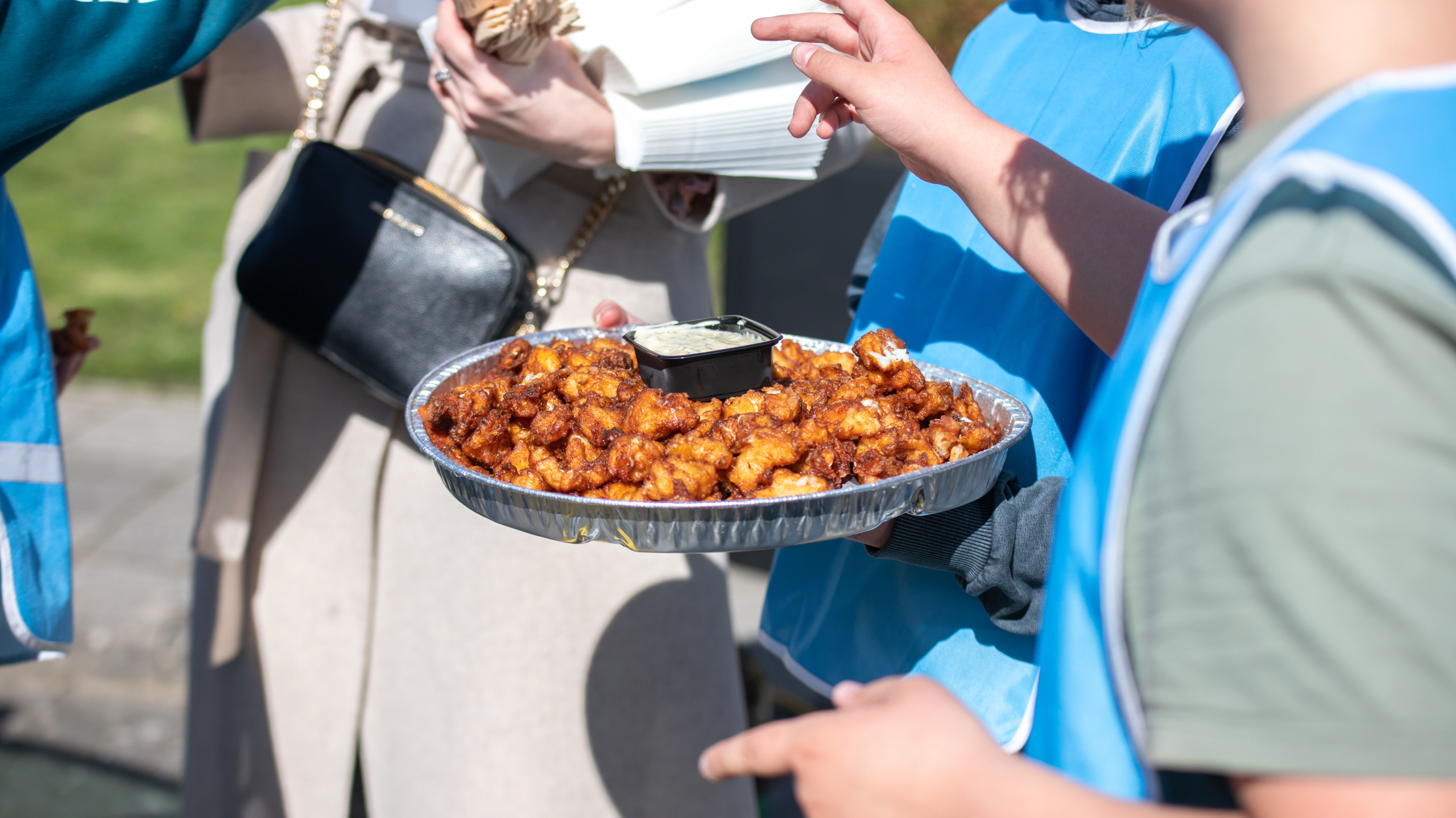 De auto van Dijk en Waard Centraal wordt ondertussen vol enthousiasme gewassen. Wat opvalt is dat daar professionele materialen voor worden gebruikt. "Ja, die hebben we van Renault Stokman gekregen," legt juf Tessa Glorie-Horselenberg uit. "Die garage is één van onze sponsors. Een andere sponsor is dakkapellen.nl. Zij hebben het hout geleverd waar we de eigen verkeersborden van hebben gemaakt." Net op dat moment komt er een grote schaal met kibbeling voorbij. "Onze derde sponsor," lacht juf Tessa, die natuurlijk niet wordt overgeslagen. "Ferry's Visspecialiteiten. Ook die sponsors hebben de kinderen zelf geregeld." Behalve kibbeling heeft Ferry's Visspecialiteiten ook geld gegeven. En dat doen veel van de mensen in de wasstraat ook: iets extra's geven. Het is de leerlingen duidelijk gegund. "Dat schoolreisje, nou, dat is eigenlijk nú al onvergetelijk."