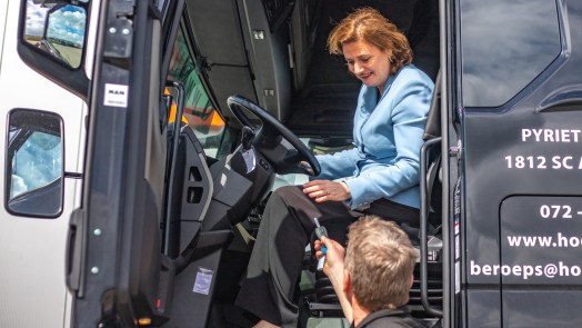 Het landelijk initiatief met bijbehorende subsidie werpt zijn vruchten dus af, maar ook klinkt er een kritische noot van Joke, wanneer de minister vraagt: "Als je in mijn schoenen zou staan, wat zou je dan nog willen veranderen?" "Er mag meer nadruk op gelegd worden dat het ook voor ouderen is", zegt Joke. "Veel vrouwen van mijn leeftijd vinden het 'wel best', maar ik wil juist werken en onder de mensen zijn. Ook voor ouderen zijn er heel veel kansen, als je maar wil." De minister knikt. Na haar ervaring op de vrachtwagen overweegt ze zelf wellicht ook een switch.
