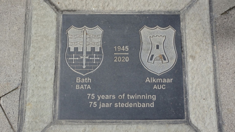 De Bathbrug, de Laan van Bath: Alkmaarders struikelen soms even over de Engelse 'th', maar deze namen bewijzen wel de vriendschap van de kaasstad met de Engelse stad Bath. Die vriendschap, die teruggaat op de bevrijding in 1945, is nog altijd innig. Dat werd dit weekend nog maar eens onderstreept door de onthulling van de plaquette '75 jaar stedenband' in Bath. Of zoals men daar zegt: "75 years of twinning".