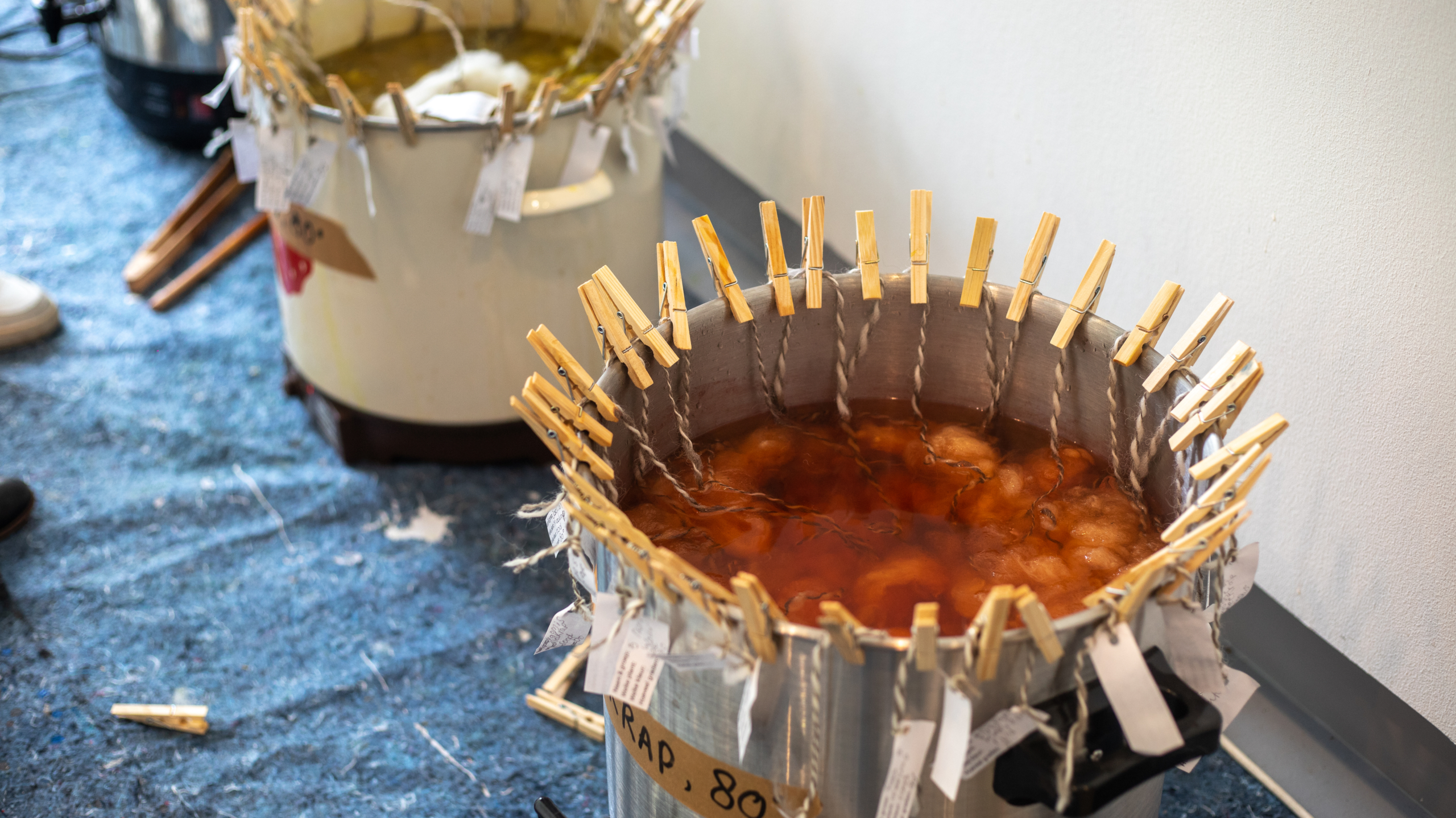 Net als de kunstenares maken de leerlingen producten van pure wol door deze op een duurzame manier te bewerken. In het begin is het even wennen. "Eww, ik ruik schaap!" roept een van de kinderen terwijl de groep de wol aan het wassen is. Sommigen trekken een vies gezicht, maar wanneer ze zien dat de gele kleur verandert in wit, hebben ze weer volle aandacht. "Je kunt wol op een natuurlijke manier verven met behulp van avocado- of uienschillen, kurkuma of bijvoorbeeld meekrap", legt een medewerker van het museum uit. "Meekrap geeft rood en kurkuma geeft geel. Als je de wol eerst beitst, als het ware voorbereidt, blijft de kleur behouden. Dit biedt perspectief voor de textielindustrie", voegt ze hieraan toe.