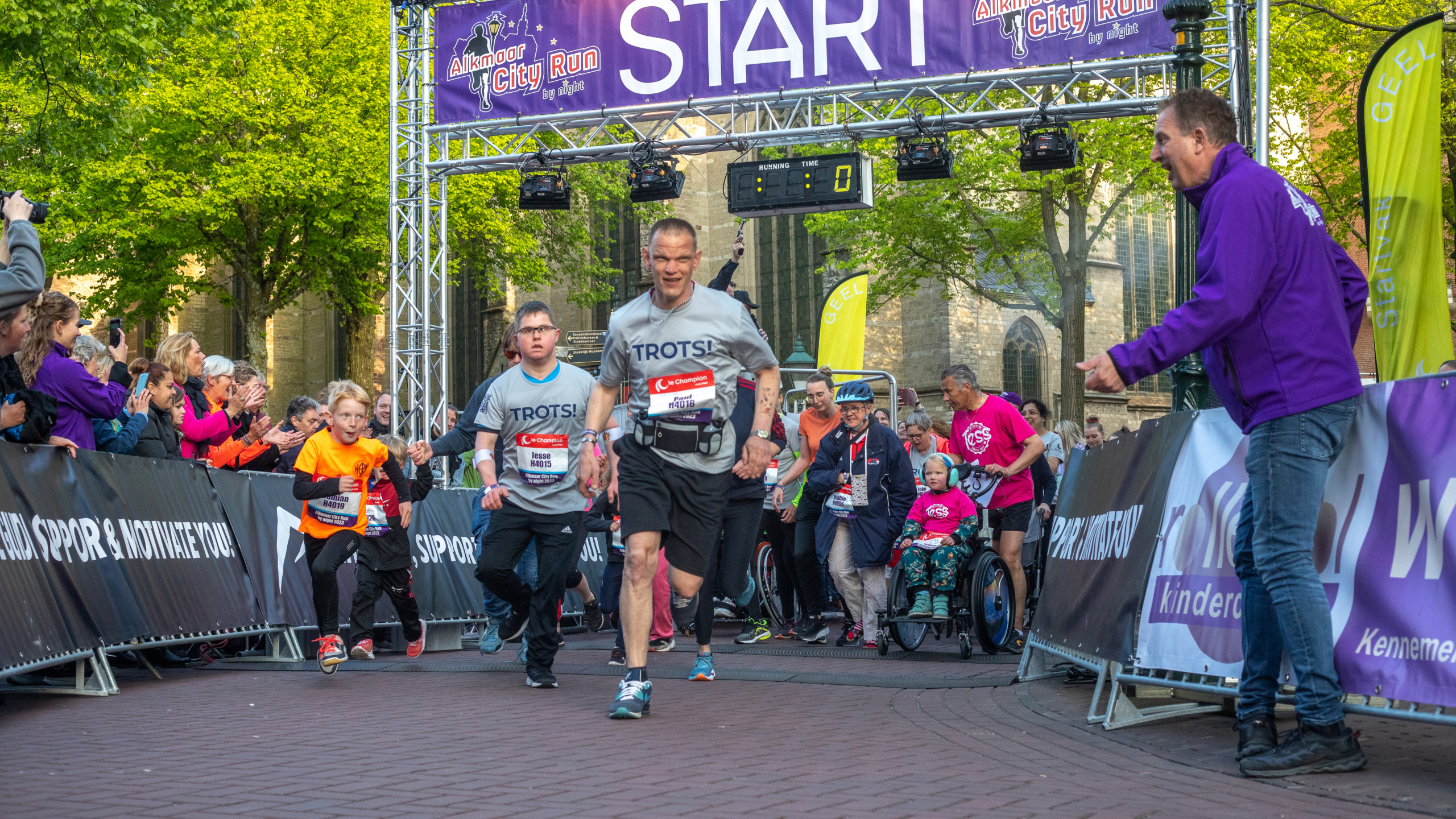 En toen was het tijd voor de Heroes, een nieuwe categorie van de Alkmaar City Run. Eenhoorn zei het belangrijk te vinden dat iedereen kon bewegen en sporten. Daarom schoot hij de rond 25 lopers met een beperking op weg, nadat ze in het startvak een polonaise hadden gedaan tijdens de warming-up.