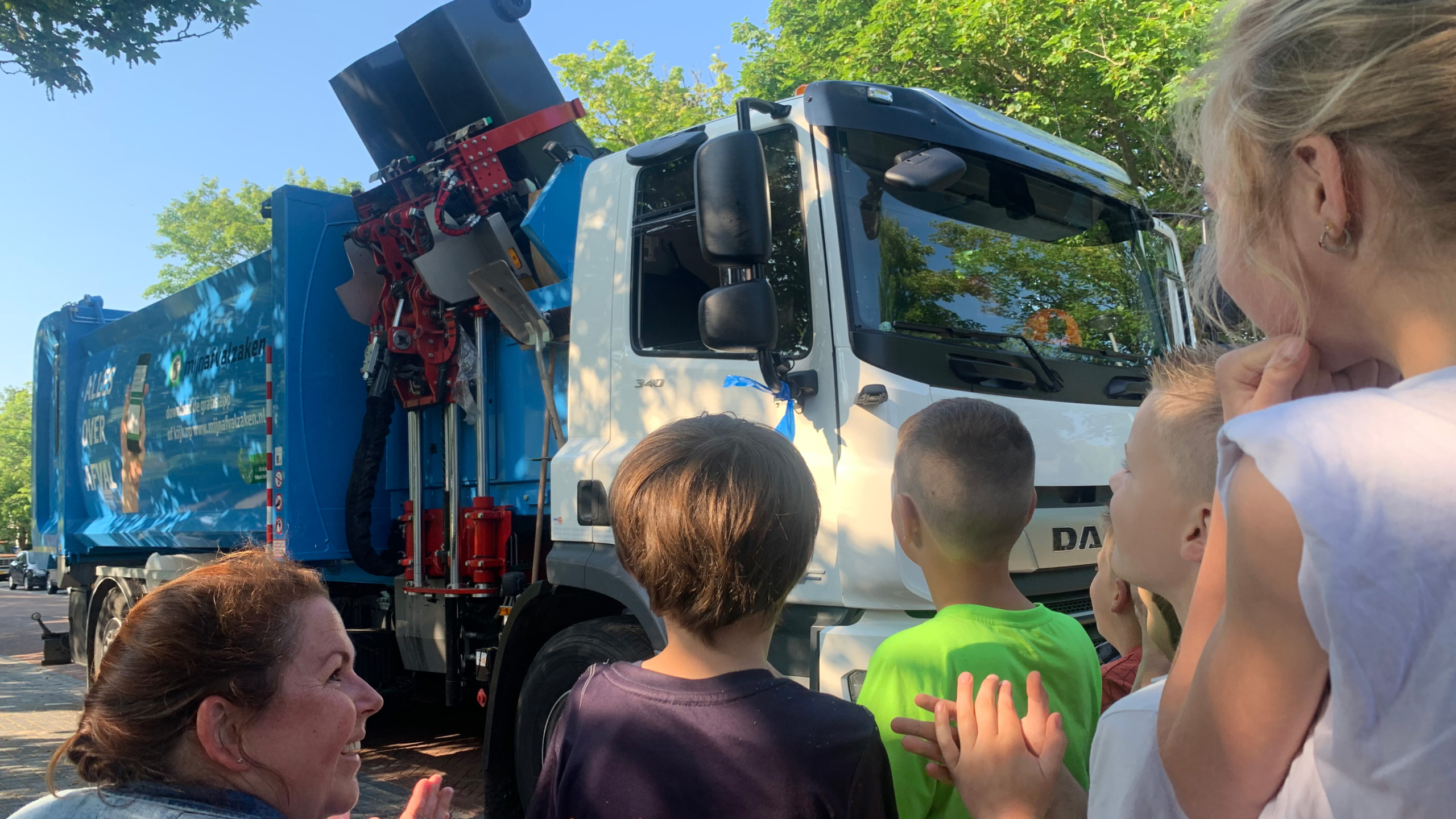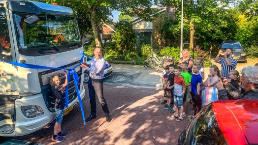 Luuk en de wethouder stappen weer in de nieuwe wagen. De achtjarige kijkt nog even om zich heen en pakt de bakken op en kiepert ze om. Trots loopt hij vervolgens op zijn klasgenoten af. Hij vond het heel cool, maar ook een beetje spannend. "Laat maar weten wanneer je kunt beginnen", lacht Briët.