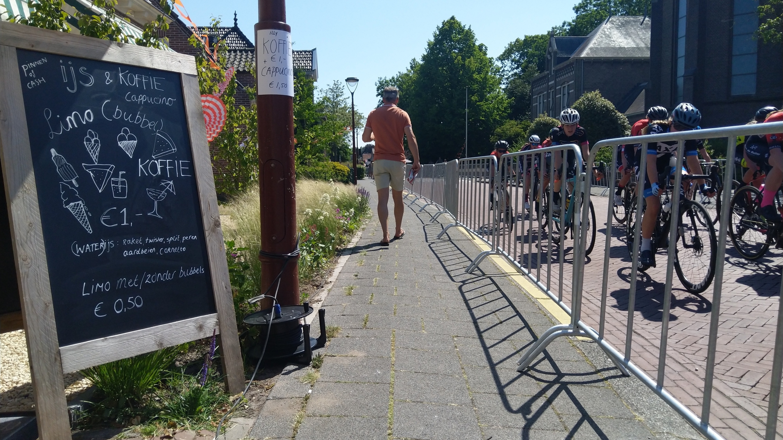 "Met ander weer was het misschien wel drukker geweest", zegt een buurtbewoonster die langs het parcours ijsjes en andere versnaperingen verkoopt. "Maar we hebben toch niet te klagen hoor. Er is veel aanloop." En inderdaad, de ijsjes vinden gretig aftrek, zeker niet alleen bij jonge toeschouwers.