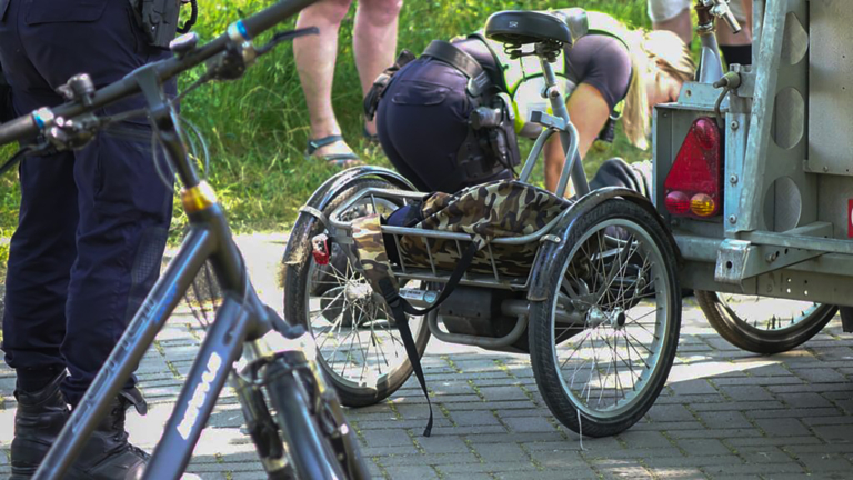Een driewielfiets is dinsdagmiddag tegen een aanhangwagen gereden op de Parallelweg in Bergen. Ter hoogte van de Kievitslaan raakte de fietser de aanhanger, die op dat moment stil stond. De man viel hard op de grond.