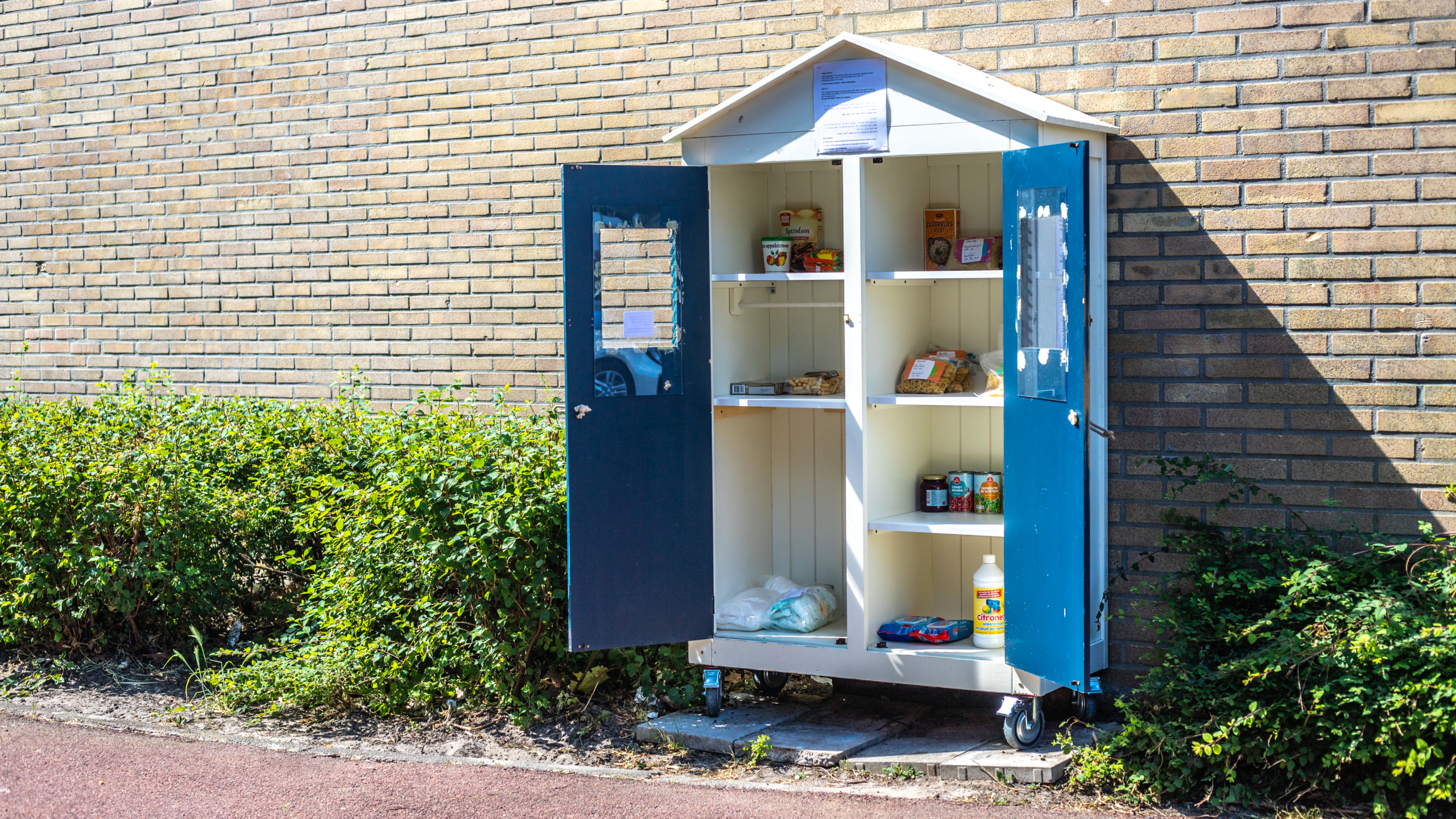 Ze staan inmiddels overal, in Alkmaar, in de Duinstreek, in Dijk en Waard en in Heiloo: deelkastjes. Daar kunnen mensen met een kleinere portemonnee de spullen vinden die ze nodig hebben. Mensen die wat kwijt kunnen en in een gulle bui zijn kunnen er vervolgens weer levensmiddelen in plaatsen.