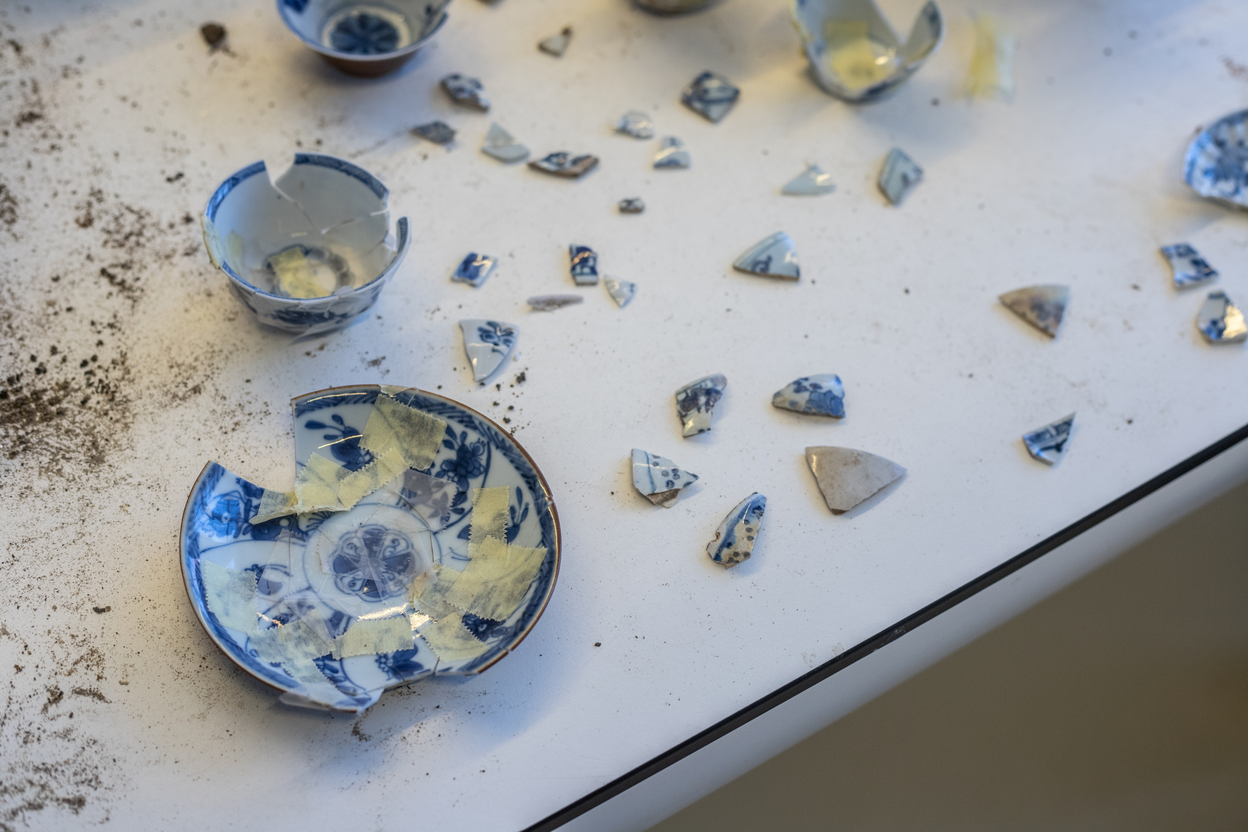 "Geschiedenis vind je zeker in archieven", vertelt Bitter, terwijl hij met scherven puzzelt tot een afbeelding ontstaat. "Ik doe zelf ook archiefonderzoek. Maar voor het hele verhaal moet je echt ook naar archeologische vondsten kijken." Want juist in die kleine overblijfselen van het vroegere dagelijks leven vind je de verhalen van gewone mensen.
