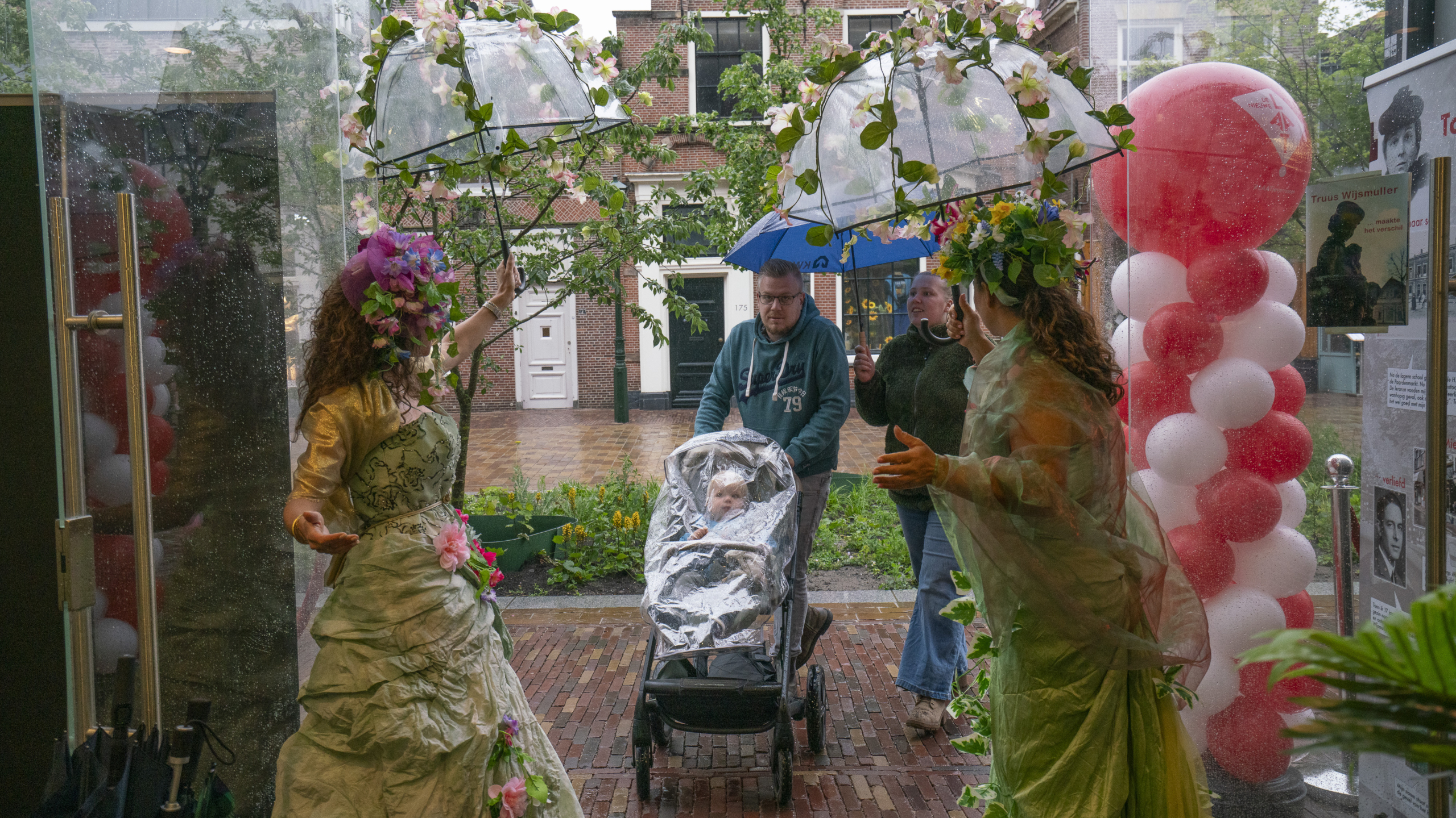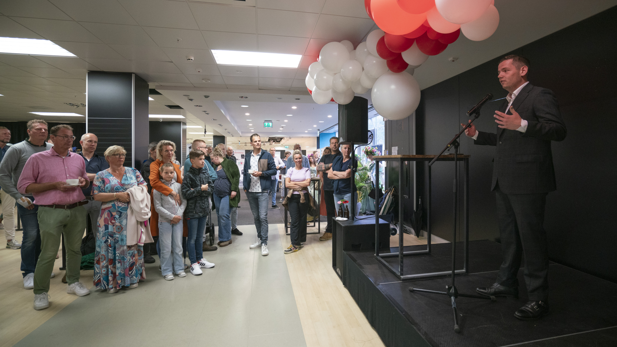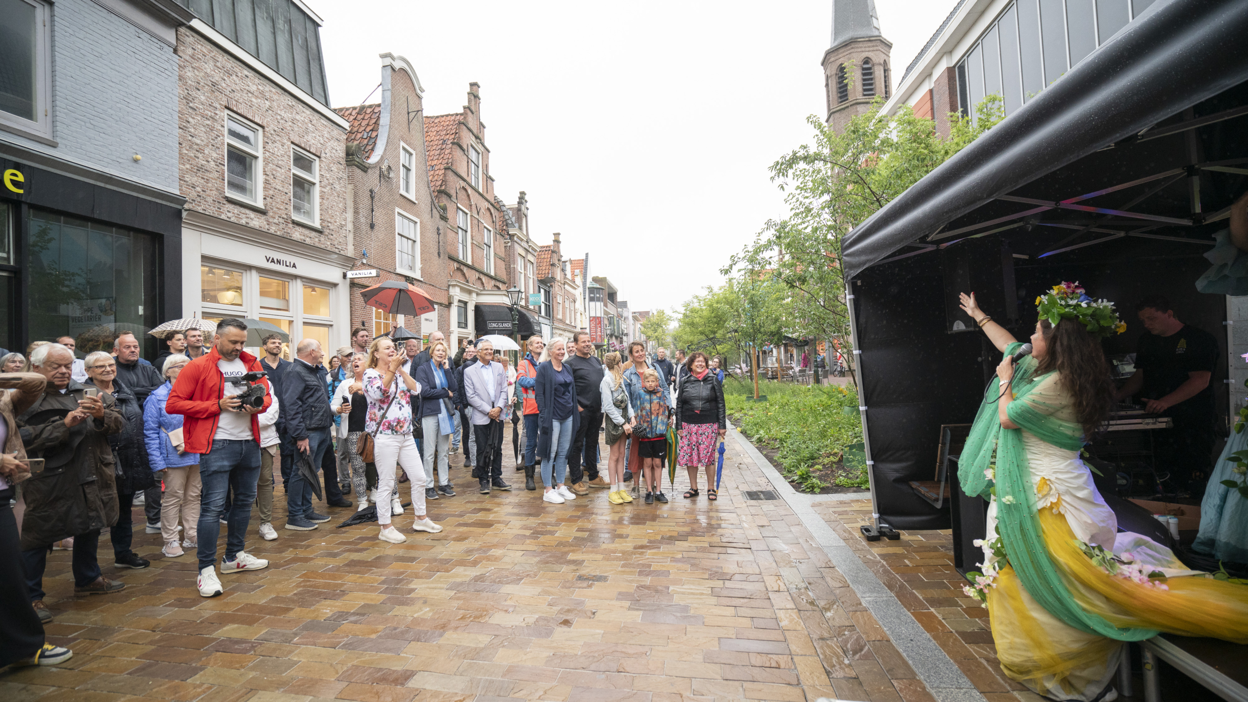 "Ja, we doen de opening toch buiten. Ik zie dat veel mensen voorbereidingsmaatregelen hebben getroffen", zegt Karin Ossebaar van de gemeente Alkmaar. Ossebaar kijkt lachend naar de paraplu's die op deze regenachtige zaterdagochtend zeker geen overbodige luxe zijn. Ze vraagt of wethouder Christiaan Peetoom naar voren komt. Hij voelt zich enigszins onwennig omdat hij als kersverse wethouder naar eigen zeggen niks aan het project heeft bijgedragen. "Wat dat betreft zijn de credits voor Pieter Dijkman en Robert te Beest. En natuurlijk de ondernemers." In het publiek klinkt wat geroezemoes. "Jullie zijn erg flexibel geweest, ondanks dat het niet altijd makkelijk was." De straat zou eigenlijk al vorig jaar november klaar zijn, maar de werkzaamheden liepen keer op keer uit. Tot onvrede van ondernemers. Björn Mulder van winkeliersvereniging Bolwerk vervolgt: "Alle winkels hebben echt een zware tijd gehad. Na corona lag de hele straat open en werd het er niet bepaald makkelijker op. Hopelijk wordt de leegstand nu ook goed aangepakt, maar het is al fantastisch dat de Laat zo is geworden."