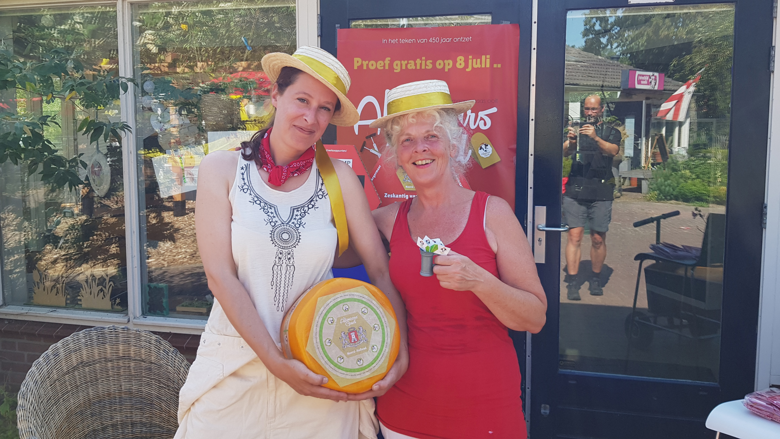Anja Telleman, die de Wijkboerderij Alkmaar runt, is ondanks dat het rustig bleef tevreden. "Wat we ook wilden bereiken is dat mensen die ons al kennen een keer terugkomen, die toch een drankje nemen, de kaas proeven.... Al de hele week kwamen er mensen naar vragen, dat vond ik echt heel leuk." De naam Telleman doet een belletje rinkelen. Anja blijkt de moeder te zijn van Shannah Telleman, organisator van de presentatiedag, samen met Denise en Gijs Schot. Dus ja, natuurlijk werkte de Wijkboerderij mee.