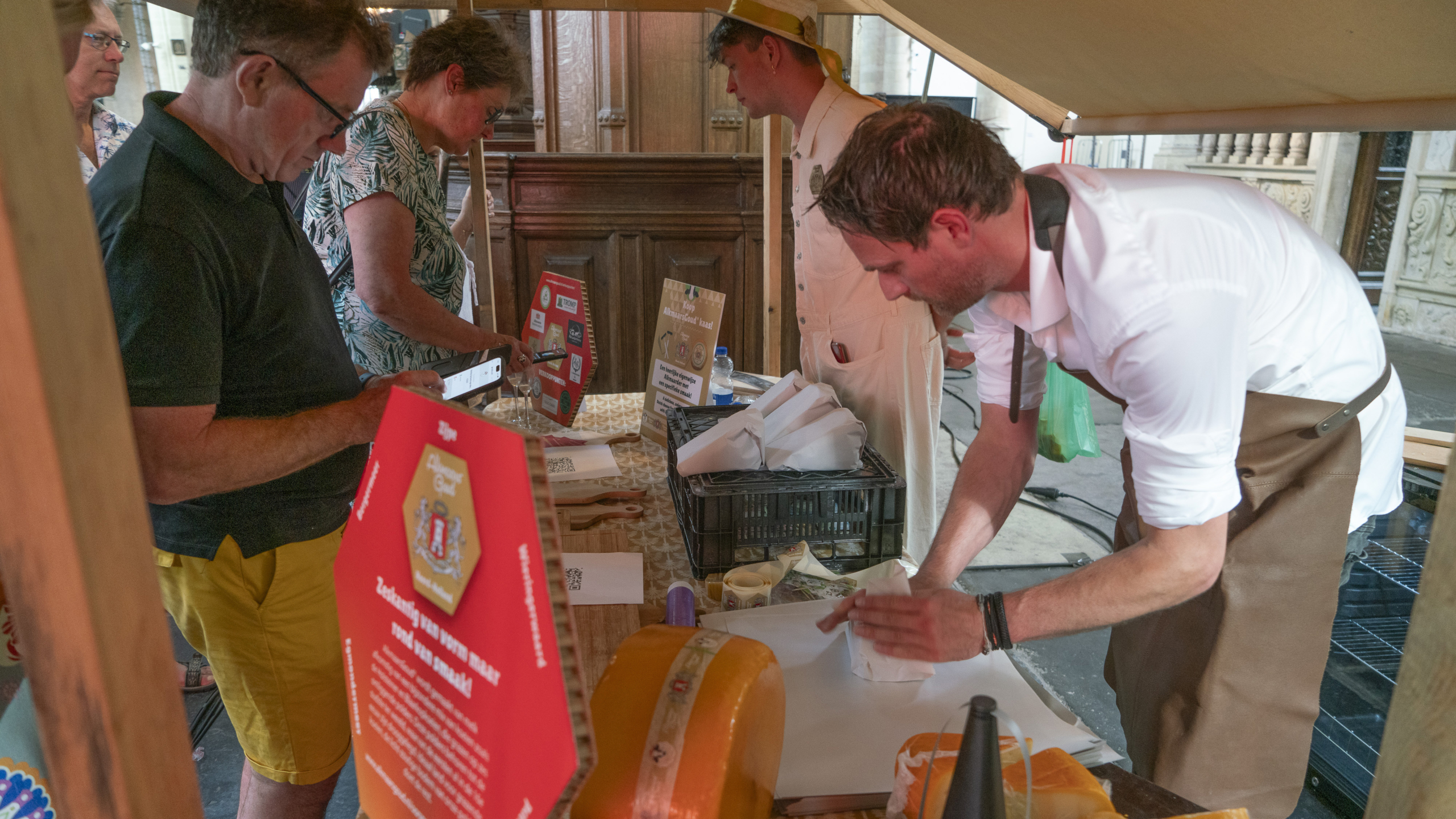 Cnossen zorgt er overigens voor dat AlkmaarsGoud tóch op de Kaasmarkt te vinden is. Nou ja, vlakbij dan. Zoals inmiddels wel bekend mag de Alkmaarse kaas niet op de kaasmarkt, omdat die door Cono en FrieslandCampina wordt gefaciliteerd. Als het aan alle aanwezigen is, dan verandert dit snel.