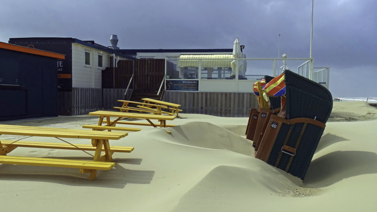 Een berg omgevallen strandbankjes en flink ingepakte mensen: de gevolgen van de code geel die werd afgegeven voor zware windstoten vannacht en vanochtend zijn duidelijk zichtbaar op het strand van Egmond aan Zee. Fotograaf Sjef Kenniphaas trok erop uit en legde vast hoe de wind zijn sporen naliet; daarvan geeft mediapartner NH Nieuws een overzicht.