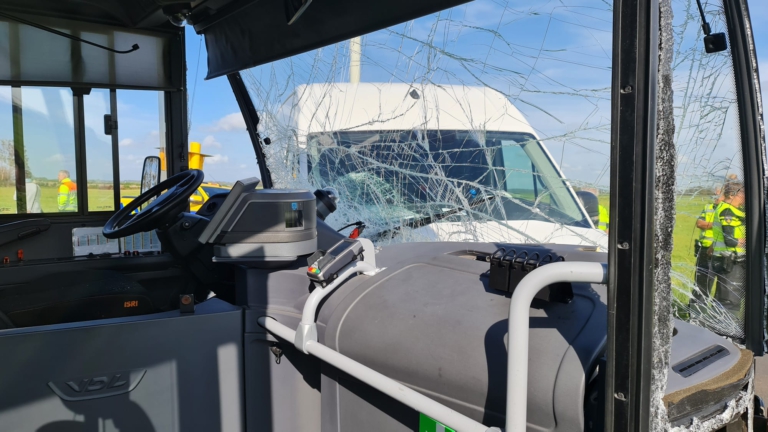 Bus op bus: een bestelbusje is bij Egmond aan den Hoef hard in botsing gekomen met een lijnbus. Dit gebeurde op zondagmiddag. De lijnbus was onderweg naar Alkmaar, maar door de klap raakte de bus zozeer beschadigd dat het voertuig niet verder kon rijden. Het zal op korte termijn ook niet meer inzetbaar zijn.