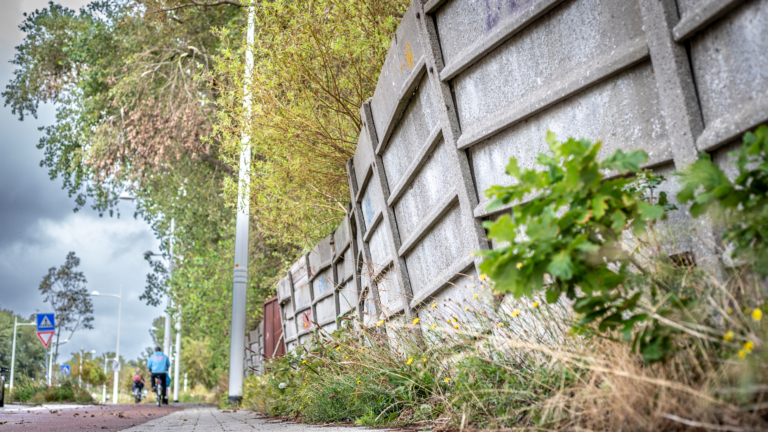 Maar waar de gemiddelde Alkmaarder daarna doorfietst, daar is voor buurtbewoners de schutting een blijvend punt van zorg. Zeker bewoners van de nieuwbouw aan de Truus Wijsmuller-Meijerstraat. "Onze kinderen spelen daar", is een veel geuite angst. En dan gaat het niet alleen om de betonnen schutting, die duidelijk verouderd is, maar om de nieuwe geluidsmuur, die nu al flink gehavend is.