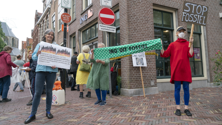 "We hebben gedaan wat we konden. Het was een geslaagde middag", vertelt initiatiefneemster Margreet tegen Alkmaar Centraal. "Er is geflyerd en we kregen veel positieve aandacht. Onze boodschap over ING kwam binnen bij de mensen." Want nee, het was zeker niet toevallig dat Extinction Rebellion demonstreerde voor het Alkmaarse gebouw. "De ING financiert met afstand van alle financiële instellingen in Nederland de meeste uitstoot van broeikasgassen", legt Margreet uit. "Op deze manier wordt bijgedragen aan het steeds heter worden van de aarde. Daarom maken wij het voor de ING zelf extra heet."