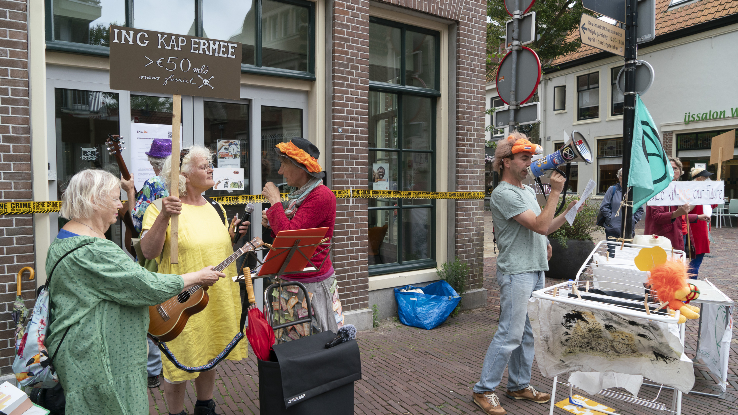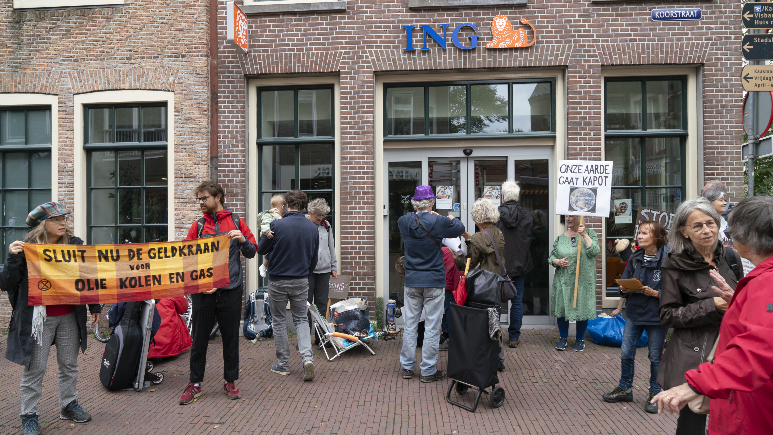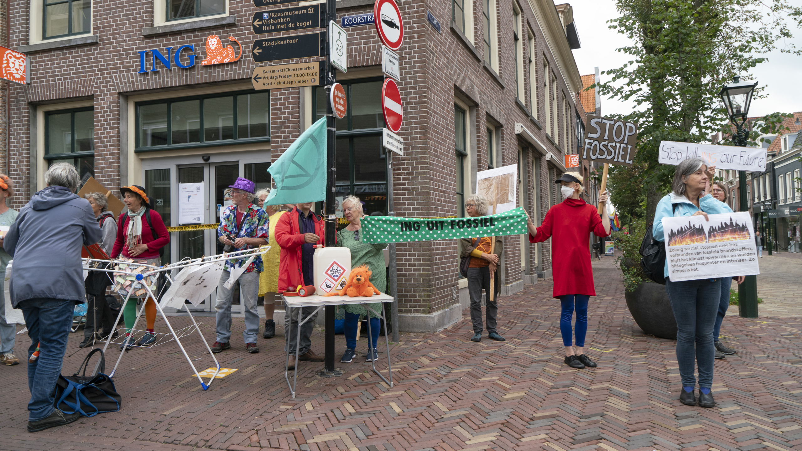 Klimaatactivisten van Extinction Rebellion hebben zaterdagmiddag gedemonstreerd voor het ING-filiaal aan de Koorstraat in Alkmaar. De rebellen eisten dat de bank per direct stopt met het financieren van fossiele energie. De bank was 'door omstandigheden' dicht.