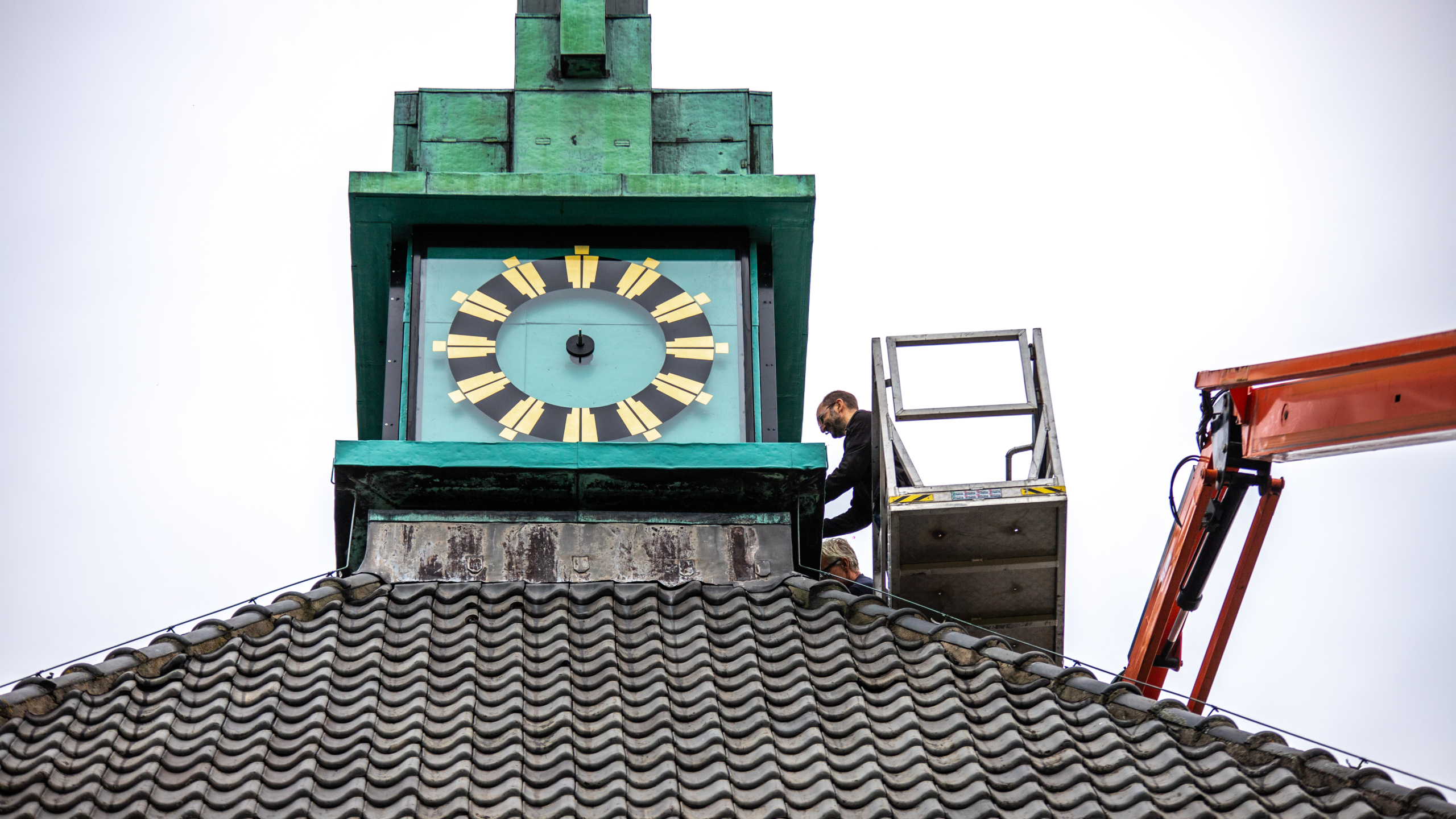 Maar nu doet de klok het dus weer. En zelfs vóór donderdag al: "Toen het niet lukte om de wijzers er op te zetten, door het weer, hebben we eerst de uurwerken aangepakt. Die zijn gekoppeld aan de computer. Donderdag hoefden alleen de wijzers er nog op." Dat betekent dus dat de klok eigenlijk al een week werkte, alleen was dat niet te zien, omdat de wijzers nog niet meedraaiden.