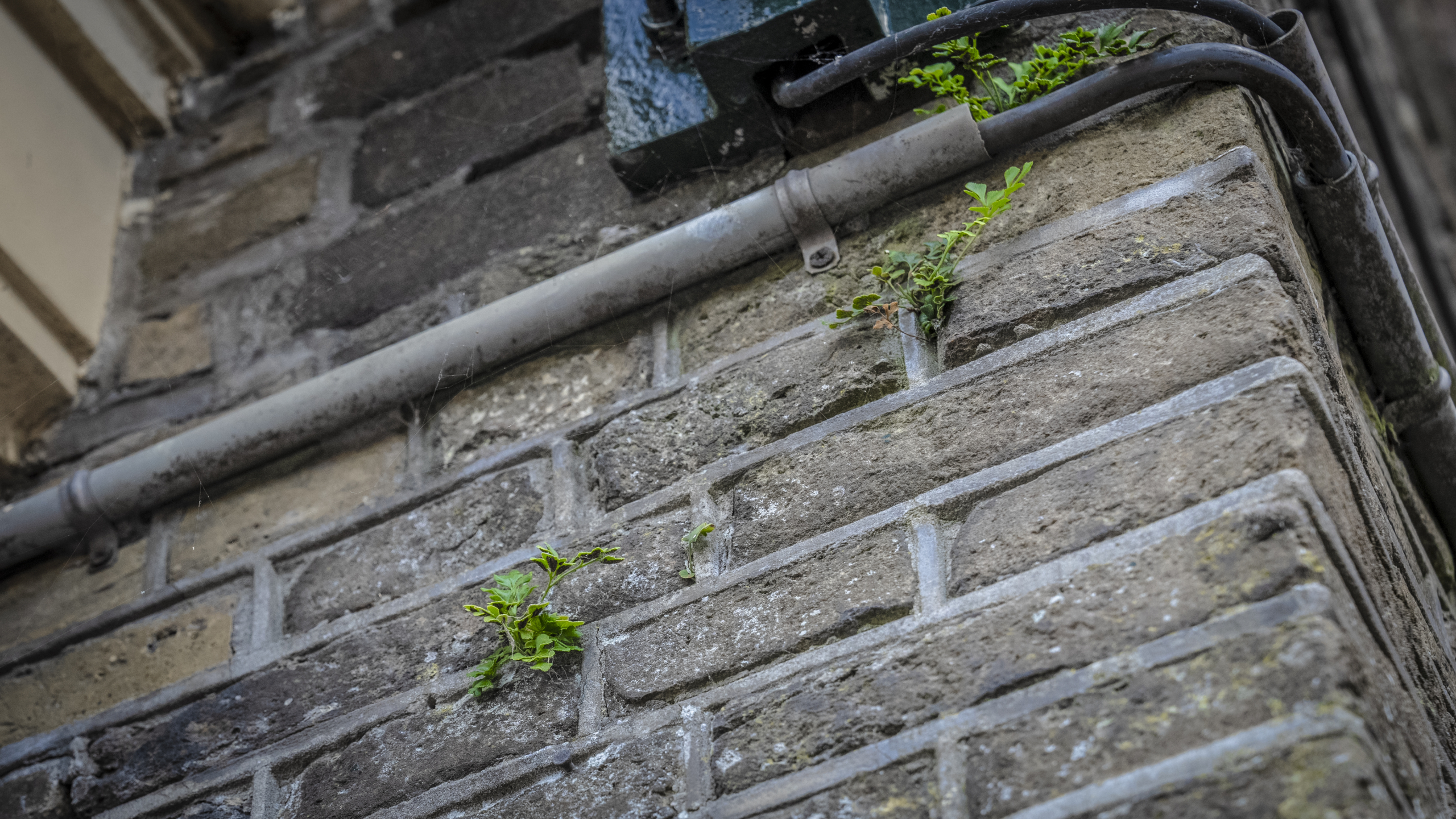En dat laatste beaamt Gonggrijp van harte: "Ik ben er altijd verbaasd over dat we dit soort muren in Nederland zo schoon willen houden. Terwijl we het tegelijk zo mooi vinden als we in Zuid-Europa zijn. Het is toch een soort romantisch beeld. En het plantje kan echt helemaal geen kwaad." De oude Alkmaarse Waag kan dus prima óók een natuurlijk monument zijn - en dat midden in de stad.