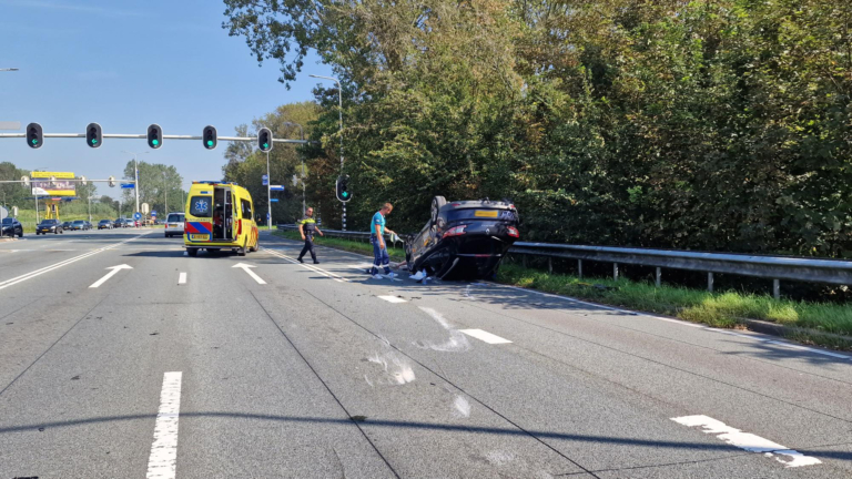 Op de ringweg van Alkmaar is een auto over de kop geslagen. Dat gebeurde donderdagmiddag op de kruising bij ijsbaan De Meent. Daar is ook de afslag naar Egmond. Bij het ongeluk vielen zeker twee gewonden. Er was veel schade en het verkeer ondervond veel hinder.