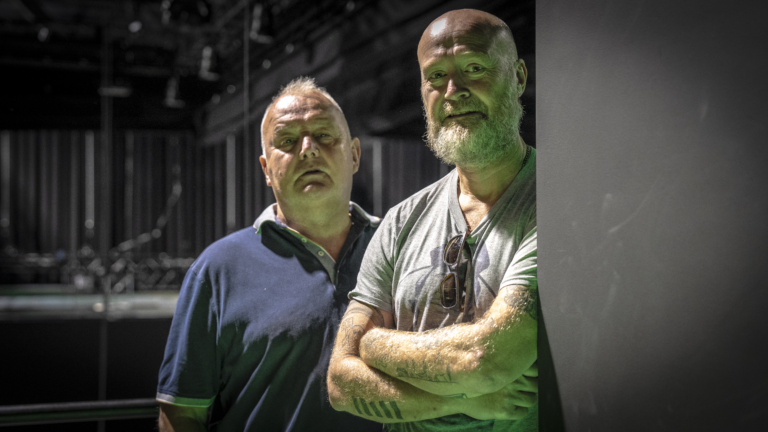 Niet alleen binnen, maar ook op deze buiten locatie achter het gebouw wordt het een muzikaal feest volgens Dennis Luken (links) en Ad MolenaarAanvankelijk zou het Heerhugowaardse festival helemaal niet plaatsvinden in en rondom het poppodium. IJsbaanterrein 't Kruis was namelijk de locatie voor de vierde editie, maar zware regenval gooide roet in het eten: "Ik ben er nog langsgereden en het kan gewoon niet. Er zijn constant grote plassen op het terrein", vertelde Molenaar toen aan de telefoon. De slechte staat van het veld was de reden voor de verplaatsing. Echter kijkt het organisatieduo al langere tijd voor een nieuwe locatie, benadrukt Luken aan tafel in FG Live. "Er is een aantal omwonenden niet blij. In de loop van de tijd zijn er meer evenementen georganiseerd op het ijsbaanterrein en sommige bewoners willen dat niet. Binnenkort zal daar verder over gesproken worden."