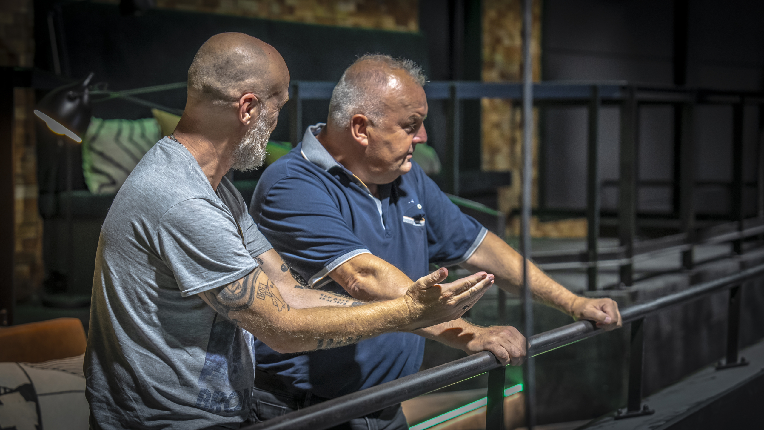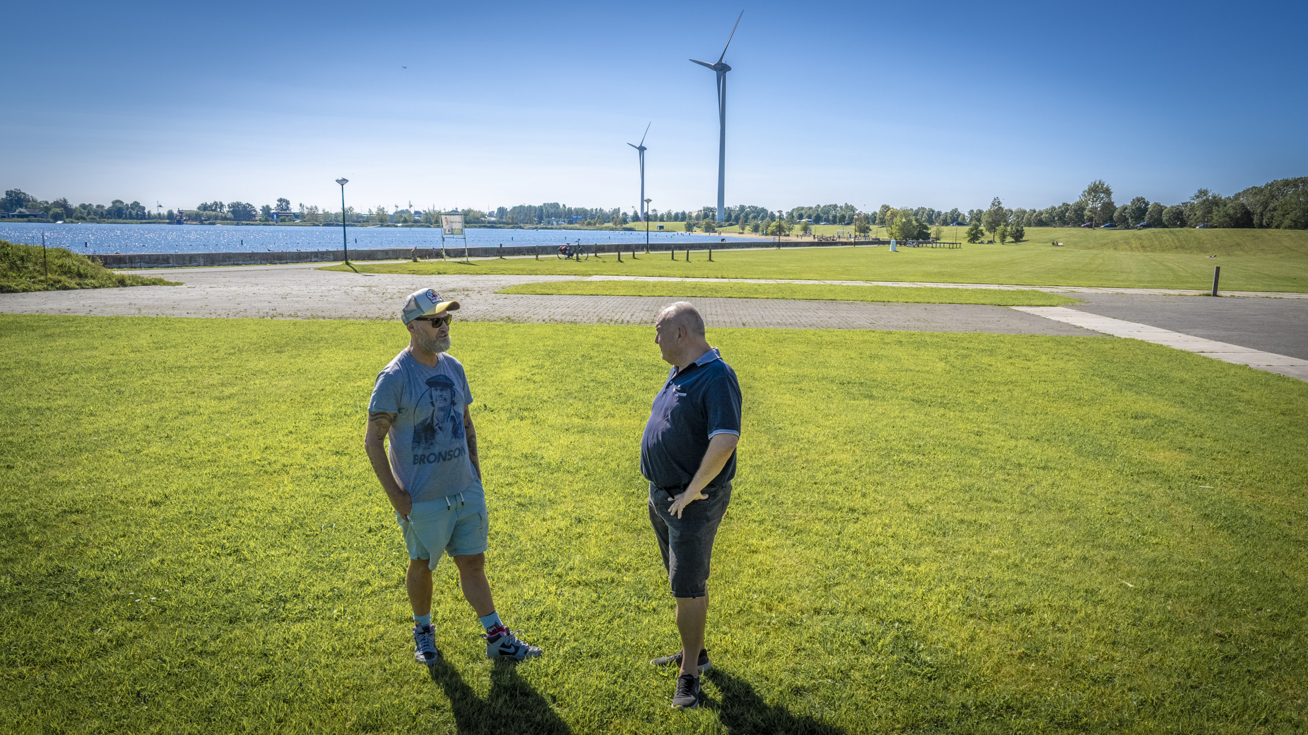 "Kijk, hier komt het podium", zegt Luken. Hij loopt achter FG Live en wijst naar de zijkant van het veld. "En hier in het midden komt de bar." We spreken met Molenaar en Luken bij de nieuwe locatie. "Misschien is het leuk als je een foto van die kant maakt", oppert Molenaar tegen onze fotograaf. Nog even en dan gaat de vierde editie van Heerhugowaard Live van start. Tal van bekende artiesten komen naar de vernieuwde poptempel FG Live. "Het is hier allemaal vrijwel nieuw", benadrukt Molenaar. Het voormalige poppodium Waerdse Tempel was een begrip in de hele regio. Vele jaren na de sluiting kunnen muziekliefhebbers eindelijk weer terecht in het pand aan het Strand van Luna. (Tekst gaat verder onder de foto)