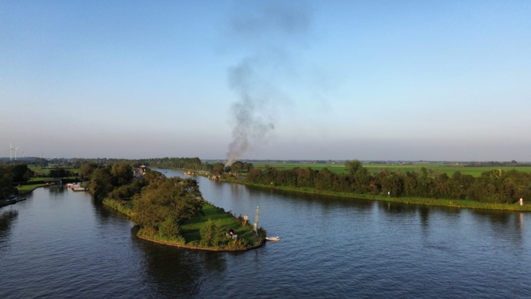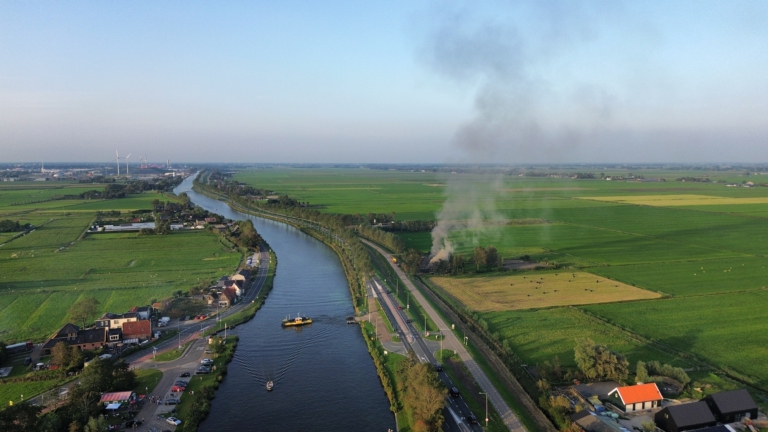 Omdat de brandweer het bluswater uit het Noordhollandsch Kanaal haalde, werd de provinciale weg N244 afgesloten voor het verkeer. (foto's: Rik DemoitiΓ©)