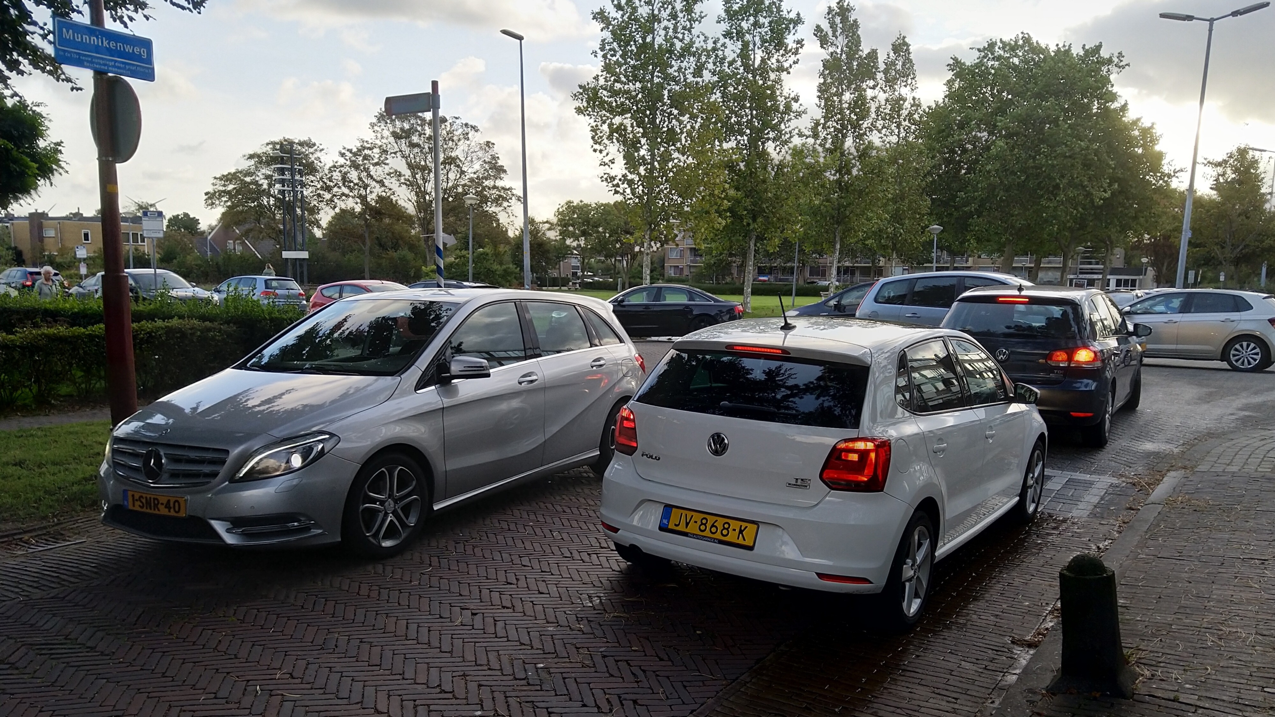 "Ga er hier maar uit", horen we op de Munnikenweg. De school is nog een eindje lopen, maar met de auto domweg onbereikbaar. Overal staat blik en maar af en toe is er beweging - stapvoets, of soms net even té hard, als de frustratie wordt botgevierd op het gaspedaal. Ook de bakfietsen komen er maar moeilijk doorheen. Op de Kasteellaan vond tegelijkertijd boomonderhoud plaats, waardoor een rijbaan was afgezet.