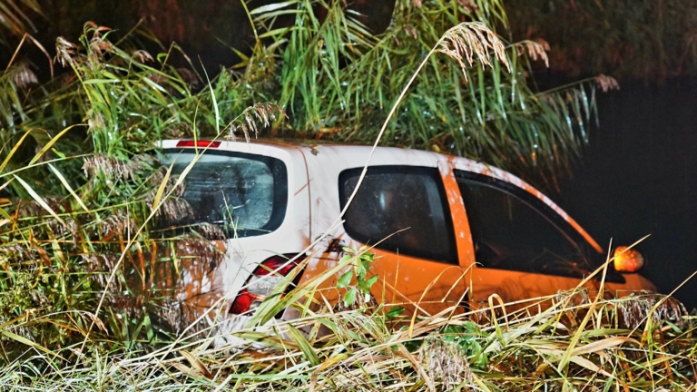Het ongeluk gebeurde op zondagmorgen, rond 5 uur.  De klap met het water moet hard zijn geweest, de auto stond met de neus weer in de richting waar hij vandaan was gekomen. Het voertuig heeft dus 'gekeerd' in het water. Daarbij raakte de auto zwaar beschadigd. Een berger is naar de plek des onheils gekomen om de auto mee te nemen.
