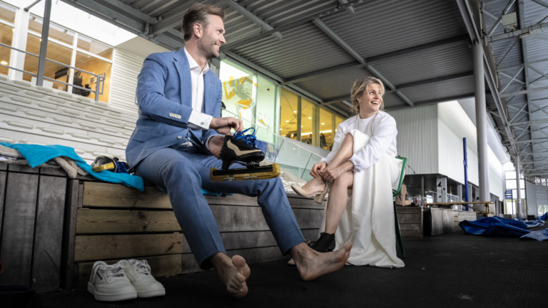 Een blijvend aandenken aan een bijzonder moment op een bijzondere dag (foto: Streekstad Centraal)Even later zitten Coen en Annemaartje al weer op de bank langs de schaatsbaan. De schaatsen gaan weer af af en komen nog even op adem. Maar veel tijd hebben ze niet, benadrukt Annemaartje. "We gaan zo richting Sint Maartensvlotbrug. Daar gaan we trouwen."