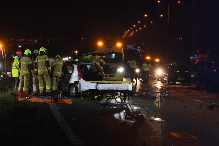 Een bergingsbedrijf haalt de zwaar beschadigde auto's van de weg en ruimt de ravage op zodra de politie de plek van het ongeval vrij heeft gegeven. Het ongeval gebeurde rond 17:00 uur. Er werd opgeschaald naar een GRIP1 situatie. Dat betekent onder meer dat er ter plaatse een commandopost wordt ingezet om de samenwerking tussen de hulpdiensten te coördineren.