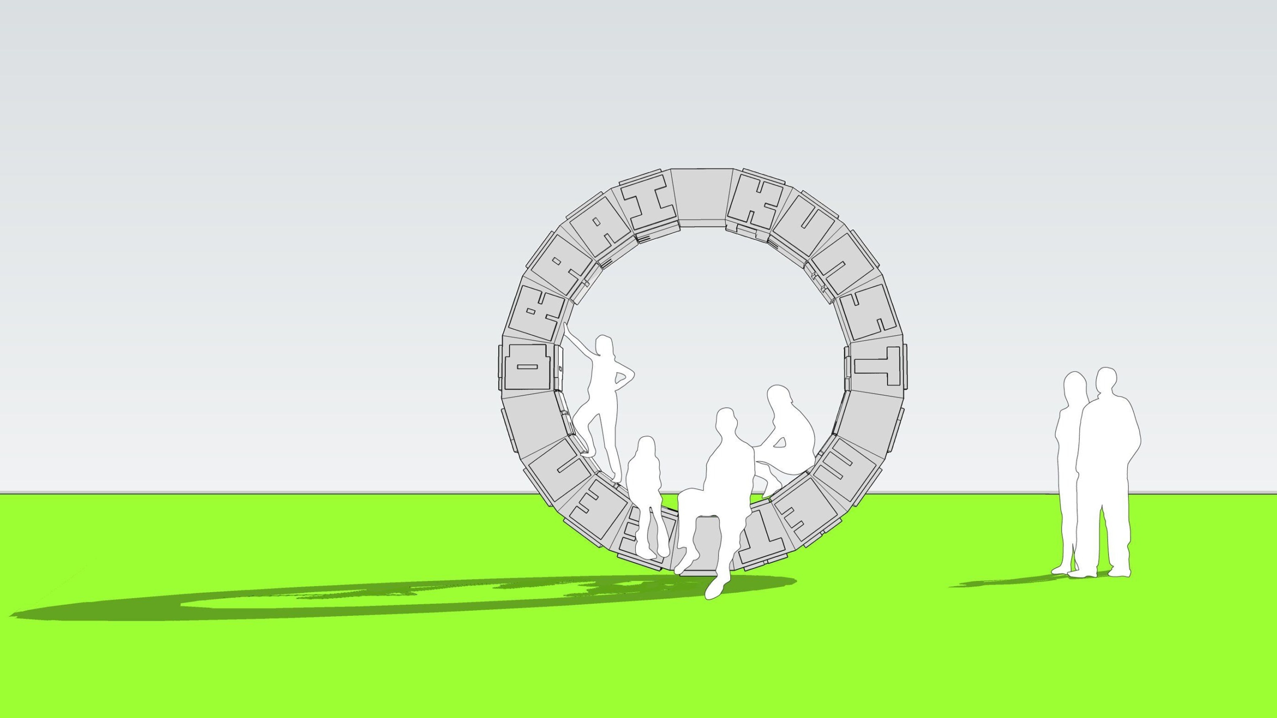 Zoomen we in op dit specifieke kunstwerk, dan zien we niet alleen een cirkel. Want de ring is meer dan een eyecather, 'Kunst met een Draai' is ook een plaats om te zitten. Om elkaar te ontmoeten. Wethouder John Does vertelde eerder al dat hij zeer tevreden is met het werk. "Kunst is belangrijk in onze leefomgeving. Het leert ons de betekenis van het leven. Het verrijkt ons."