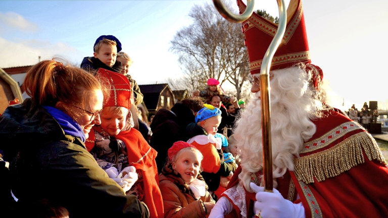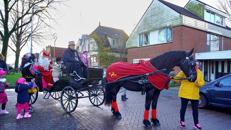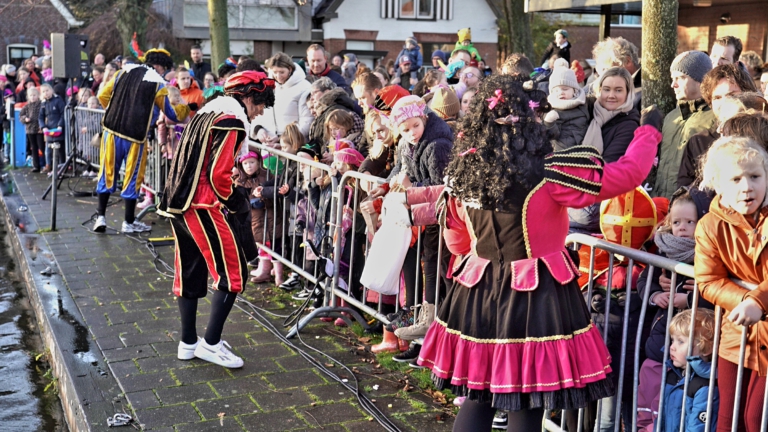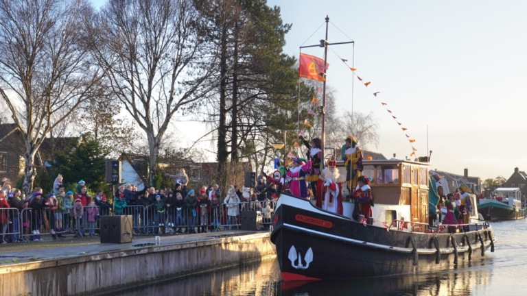 Zie ginds komt de stoomboot. De goedheiligman is zaterdagochtend ook aangekomen in Broek op Langedijk. Samen met zijn pieten meerde hij aan bij het Havenplein.