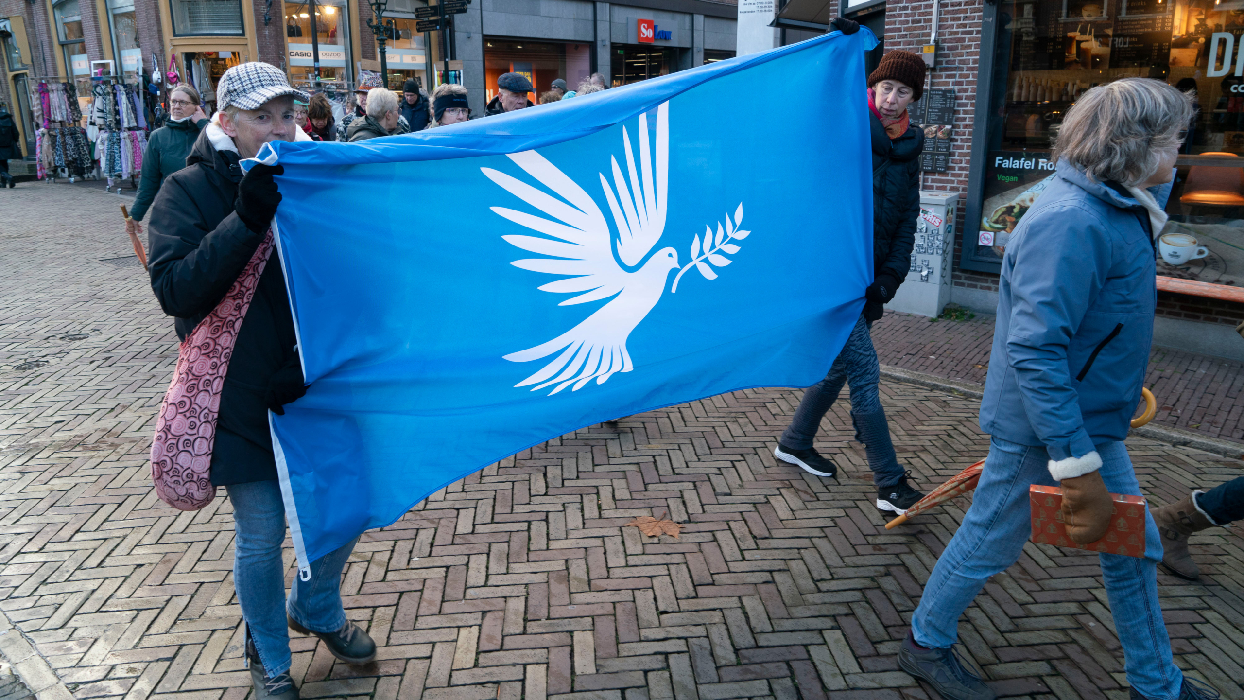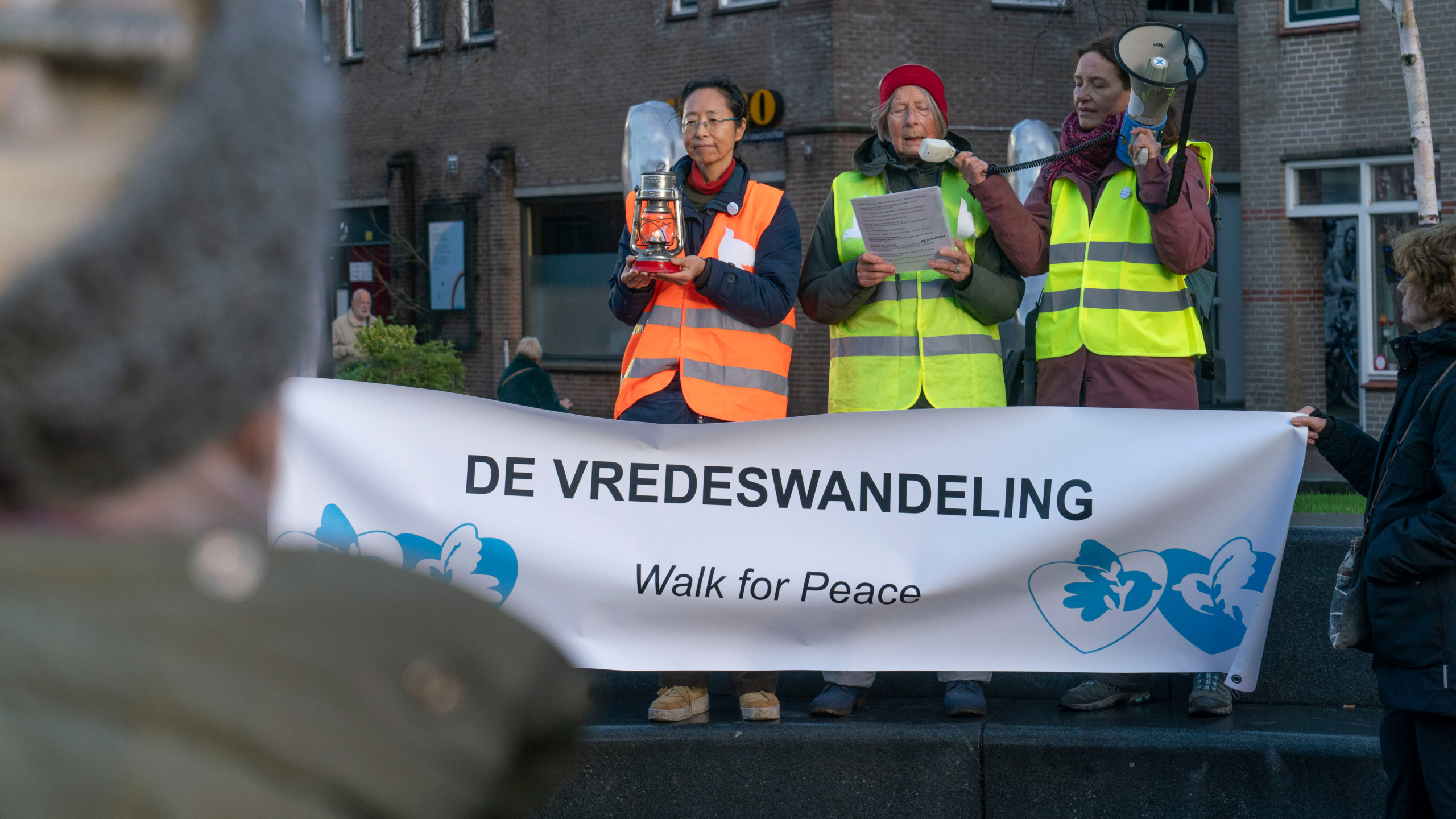 Geen protestborden, maar de vredesvlag en een spandoek. Niet om een kant van het conflict te kiezen, maar om te laten zien dat ze tegen ontmenselijking zijn. De Alkmaarse variant is ontstaan door een eerdere editie in Amsterdam. Daar liepen eind oktober vele mensen mee vanwege de 'situatie in het Midden-Oosten'. Kerken en verschillende organisaties zoals Amnesty hebben zich inmiddels aangesloten bij de vredeswandelingen.