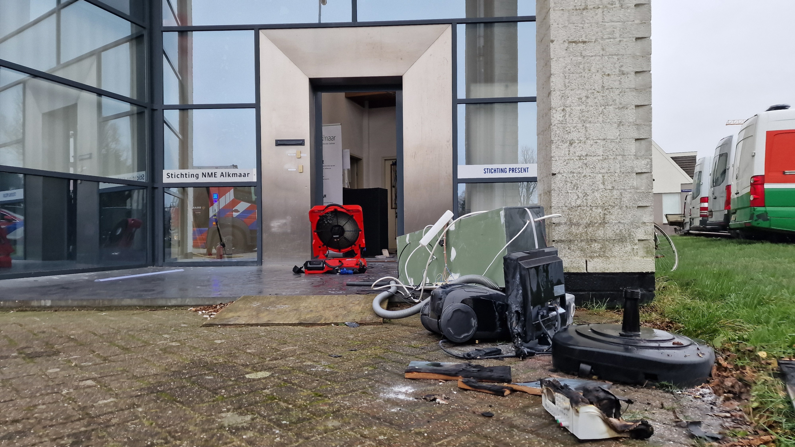 De hulpverleners zijn bezig met de afhandeling van het incident. In het midden van de foto de 'boosdoeners'. (foto: Streekstad Centraal)Toen de brandweer ter plaatse kwam waren de vlammen al geblust. Wel stond het hele pand vol met rook. Brandweermensen hebben de getroffen voorwerpen naar buiten gehaald en een ventilator geplaatst. Hoewel de fysieke schade door het vuur lijkt mee te vallen is de schade door rookontwikkeling aanzienlijk. Een ambulance kwam ter plaatse om iemand te controleren die rook heeft ingeademd.