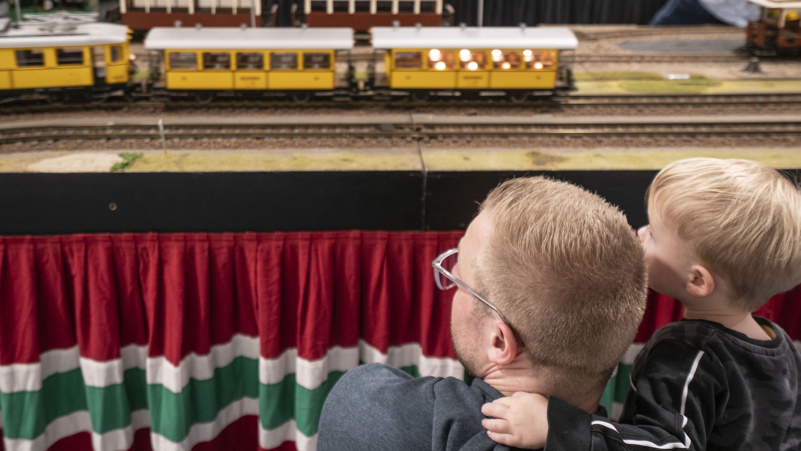 Een kind kijkt gefascineerd naar de langzaam voorbijkomende trein. Als die in de tunnel verdwijnt wordt er een sprintje ingezet naar de uitgang van de tunnel. Daar wordt de trein weer enthousiast begroet. De begeleidende opa doet qua enthousiasme niet onder. Even verderop praten twee liefhebbers over hoe software het beste kan worden ingezet. En iemand anders maakt... bomen.