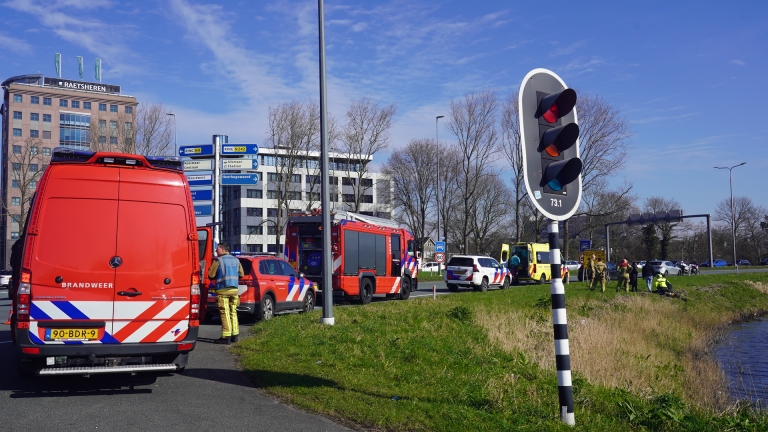 Voorbijgangers zagen zaterdagmiddag iemand in het water liggen langs de Stadionweg in Alkmaar. Er werd 112 gebeld en snel daarna arriveerden politie, ambulance en brandweer.