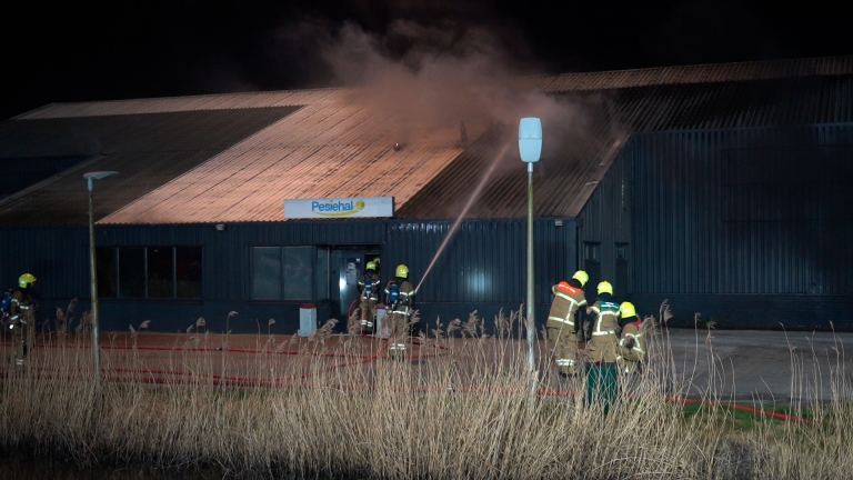 Er is brand uitgebroken in de Pesiehal langs de Bergerweg bij Alkmaar. Grote zwarte rookwolken kwamen in de nacht van zondag op maandag uit de tennishal. Van vuur was aan de buitenkant niet heel veel te zien, de brand woedde in de hal.