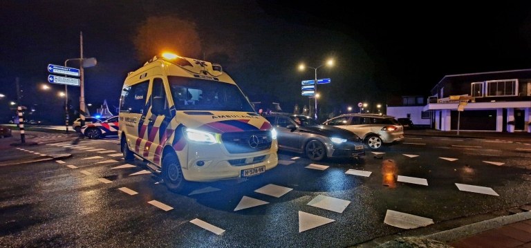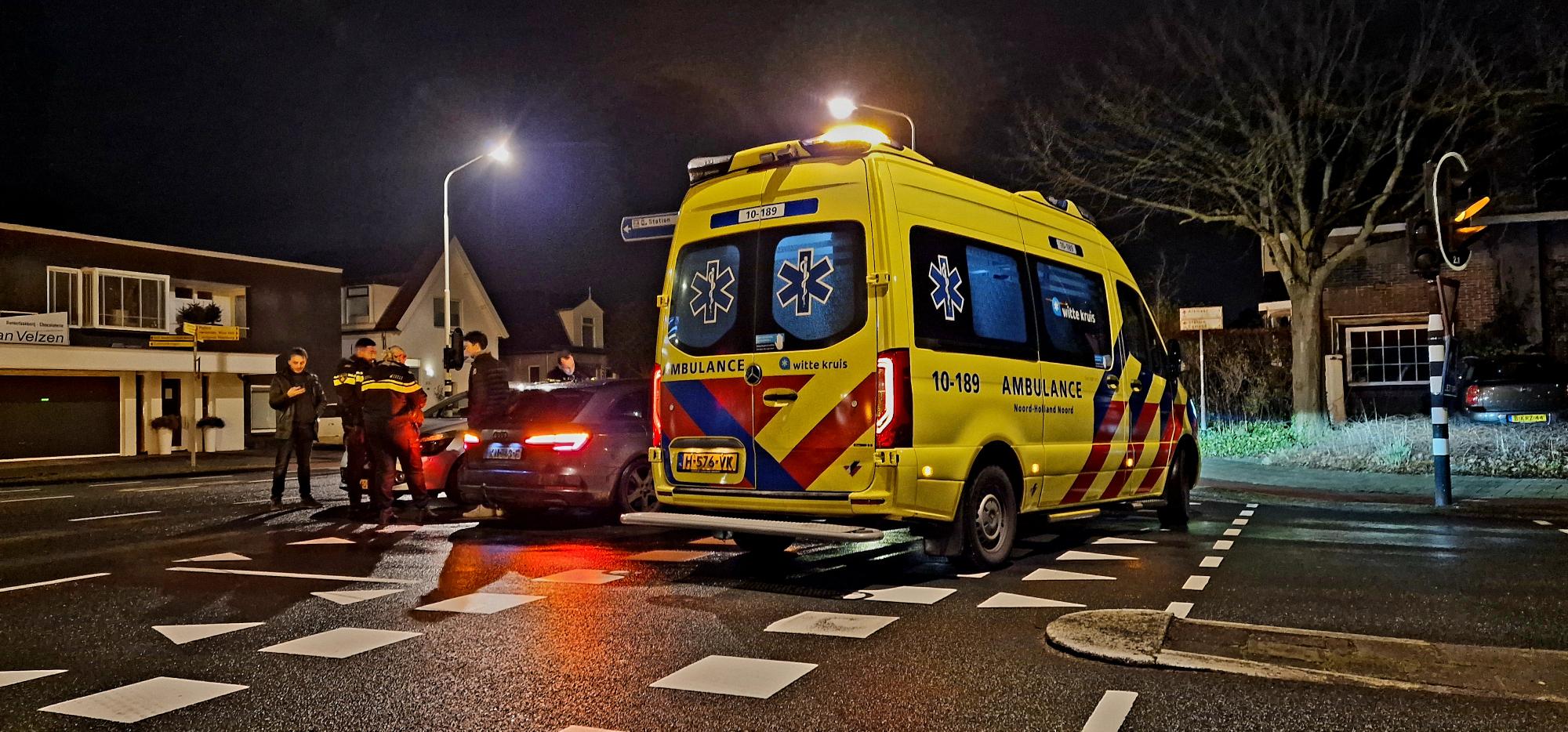Op de kruising van de Kennemerstraatweg en de Kanaalweg in Heiloo zijn twee auto's op elkaar gebotst. Dat gebeurde maandagavond toen de verkeerslichten oranje knipperden en het verkeer dus niet geregeld werd.