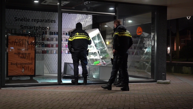 De politie kreeg rond 03:30 uur een melding van de ramkraak. Toen zij gingen kijken bij de telecomwinkel, waren de verdachte er al vandoor. De winkel in winkelcentrum 't Loo lag vol met glas en meerdere vitrines lagen omver. Of er iets is buitgemaakt is op dit moment (nog) niet bekend. Voor de winkel zijn bandensporen zichtbaar.