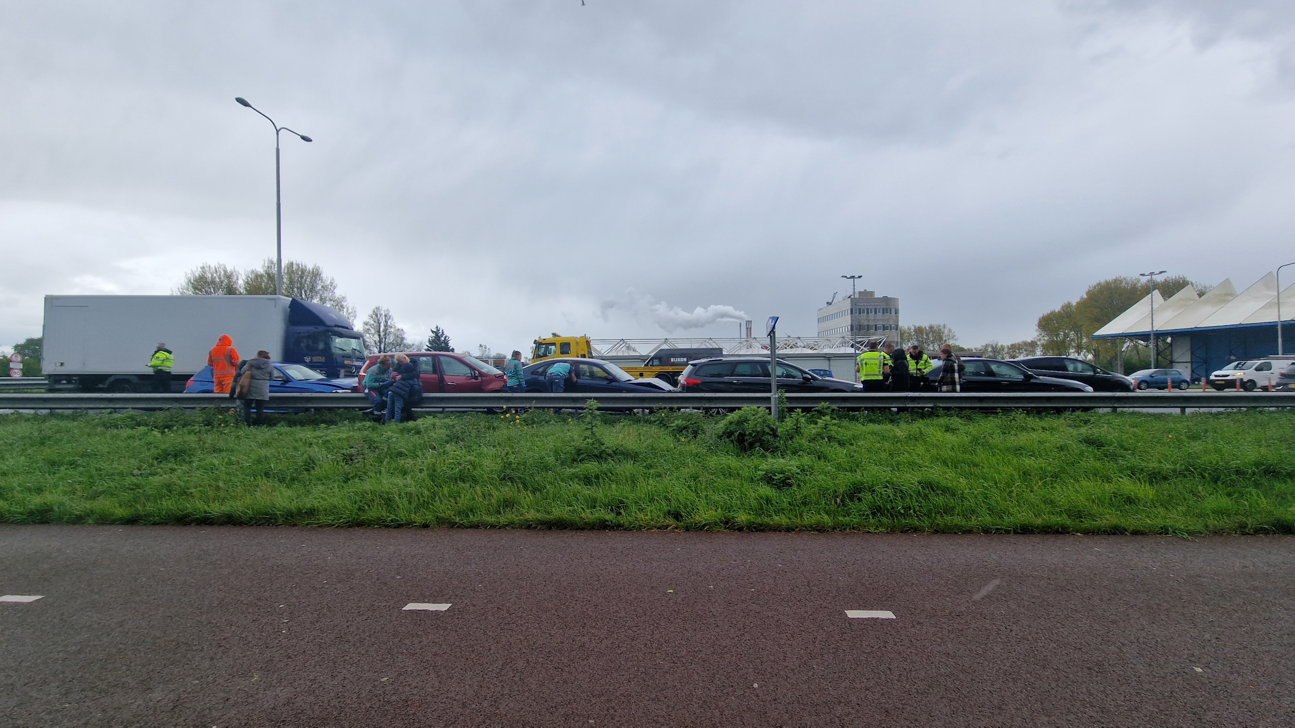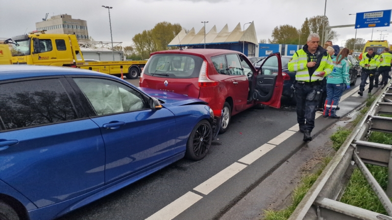 Twee van de gesandwitchte auto's waren zwaar beschadigd, maar de achterste moet mogelijk ook worden afgeschreven. Deze drie auto's zijn door een berger afgevoerd. De voorste twee bestuurders konden hun weg vervolgen.